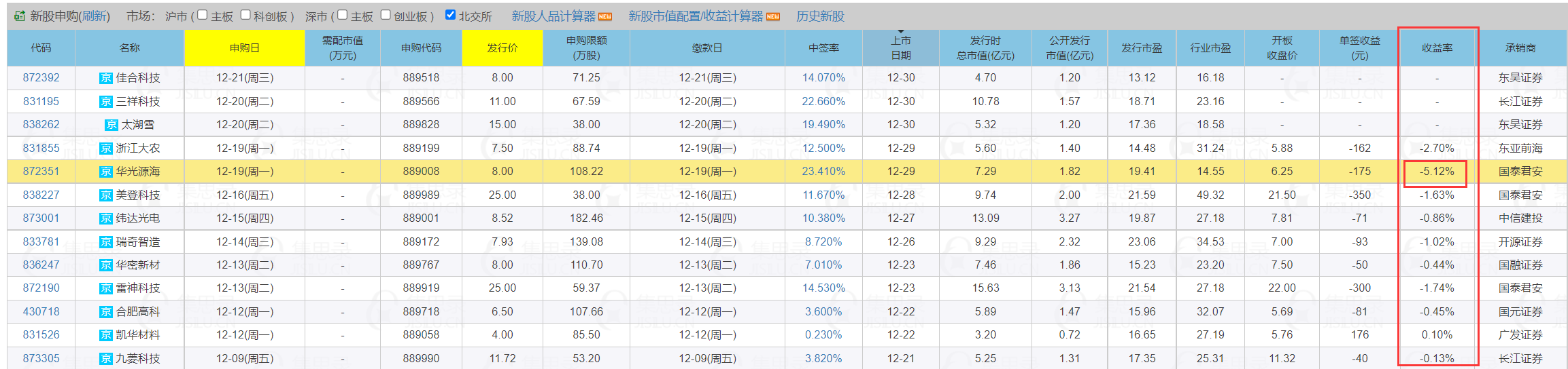 单次5%的负收益在新股历史上排的上号了