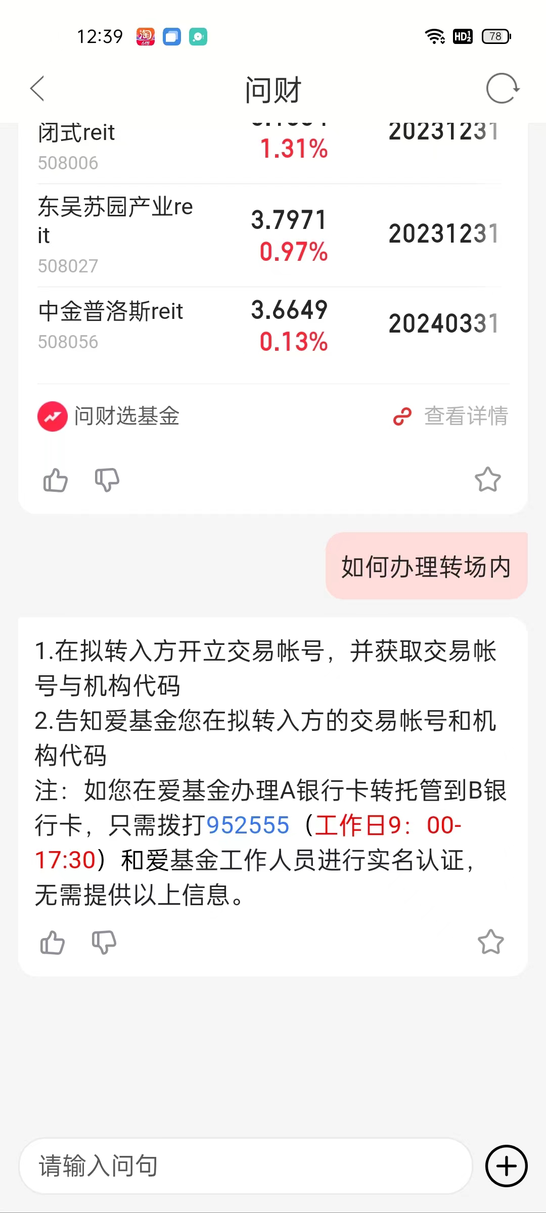 基金到账之后,发现按网上攻略在app里理财-》更多-》场外转场内 里无法转换,联系客服说要