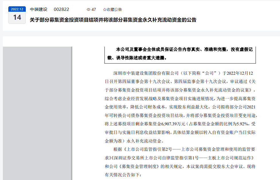 全筑股份募集资金违规补充,未归还募集资金账户。