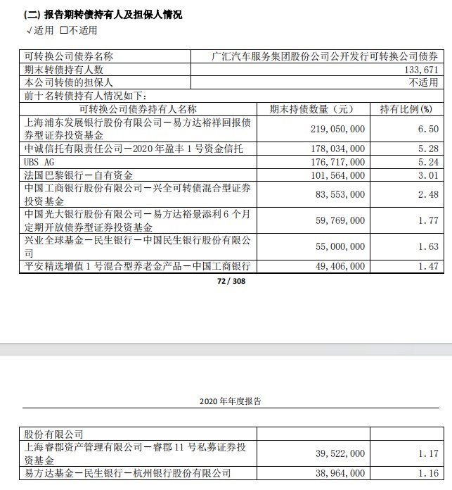 2020年末,易方达裕祥回报持有广汇转债219万张。广汇转债当年最高价114,最低价76.91,均价101.824。年末广汇转债持有人数13.36万人。