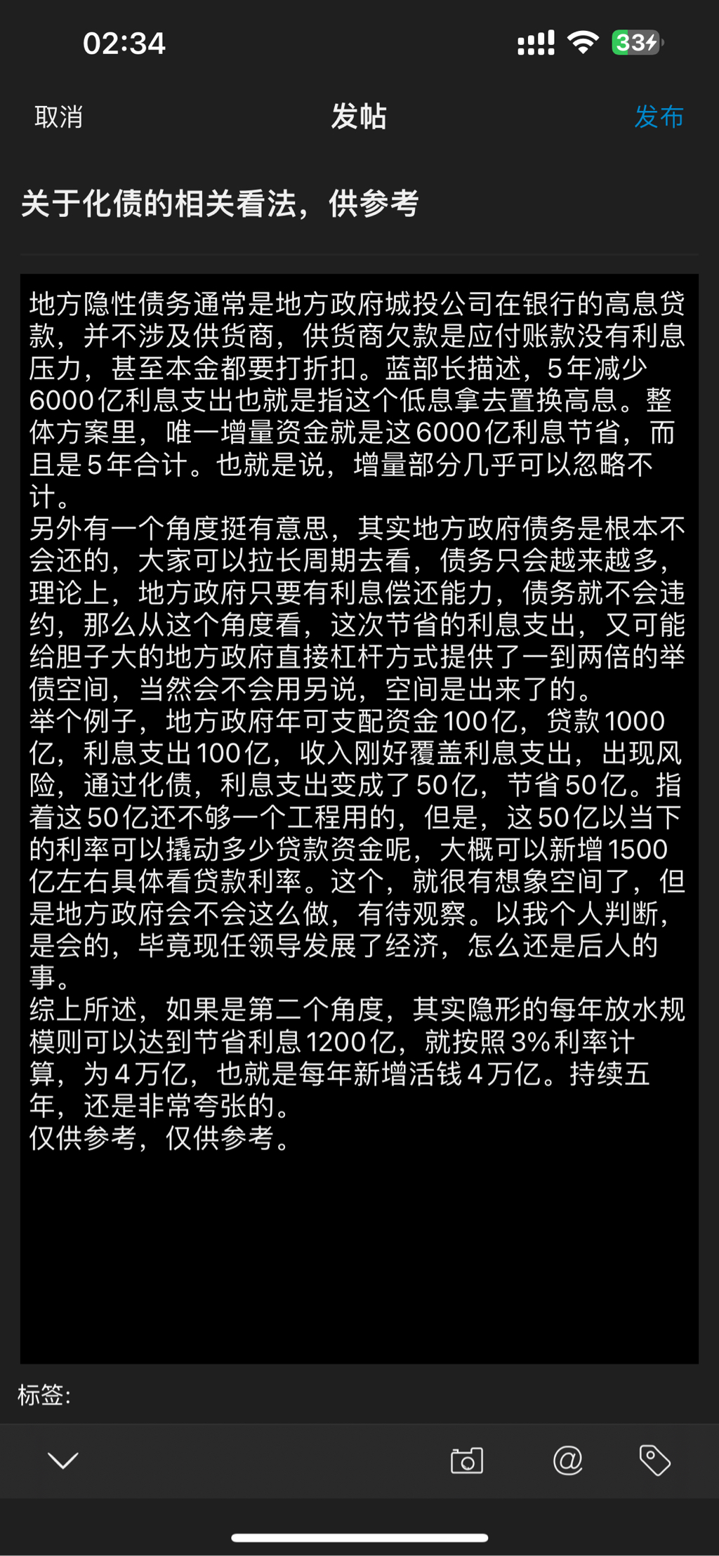 前几天我跟老婆说干脆来个100万亿,这样不仅地方政府的债务全部化掉还能给地方政府几十万亿零花钱。地方债务至少300万亿