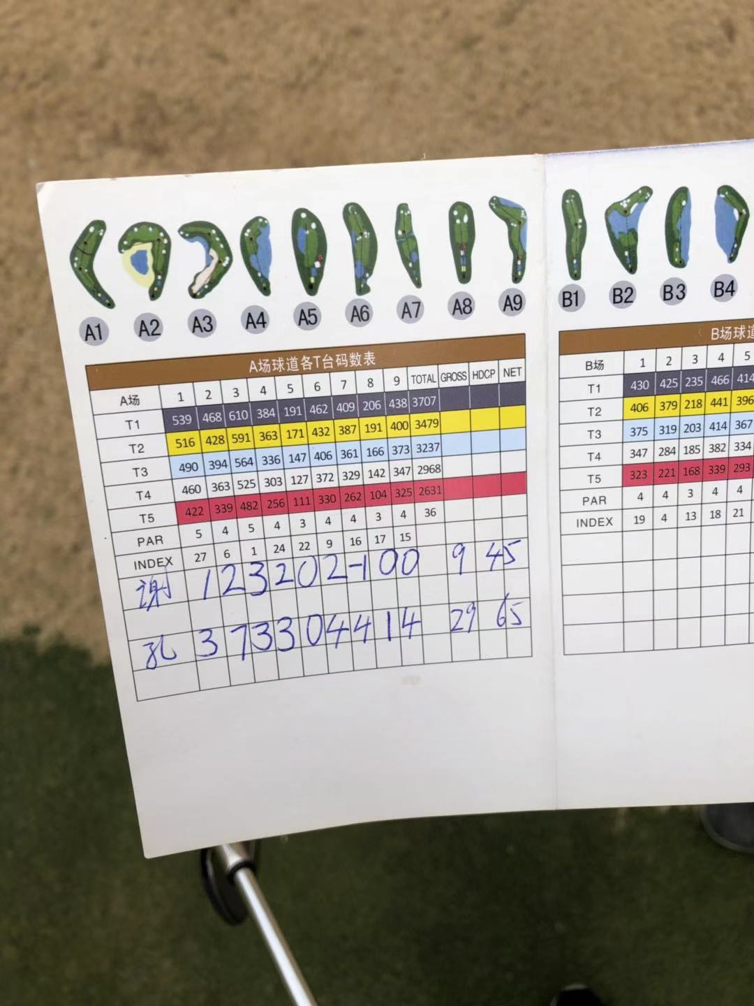 今天打的这场已经是近来打得最好的一场球了,但还是打了100杆,最后面那个+5成绩的洞有点玩的心态,所以导致了二个ob球。总结的是,推杆太臭了,这100杆,有49杆推杆,五个四推,五个三推,好几个小鸟推只抓了一个。不过一号木今天依然有打超过300码距离的,120码内的距离都是一杆上果岭,只用一号木,剩下最大的杆就是七号铁了,没用铁木杆跟球道木,自己阅读果岭,不要球童摆线,小流氓模式,打不过原地打。越打下去,越觉得高尔夫并不容易,毕竟要精确的击球落点。球童的话说,一号木与铁杆是70几杆的水平,推杆是120杆的水平。希望明年这个时候,能达到80多杆的水平吧。加油,努力吧!体重由最重时候的164斤到现在144斤了。