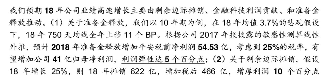 平安财险,平安银行,平安资管,这三块变动不大,我们就按17年增速来推测18年