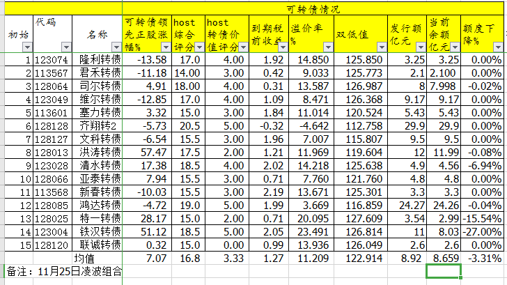 双低转债还是相对稳定一些。组合又一天价格和溢价率双降。