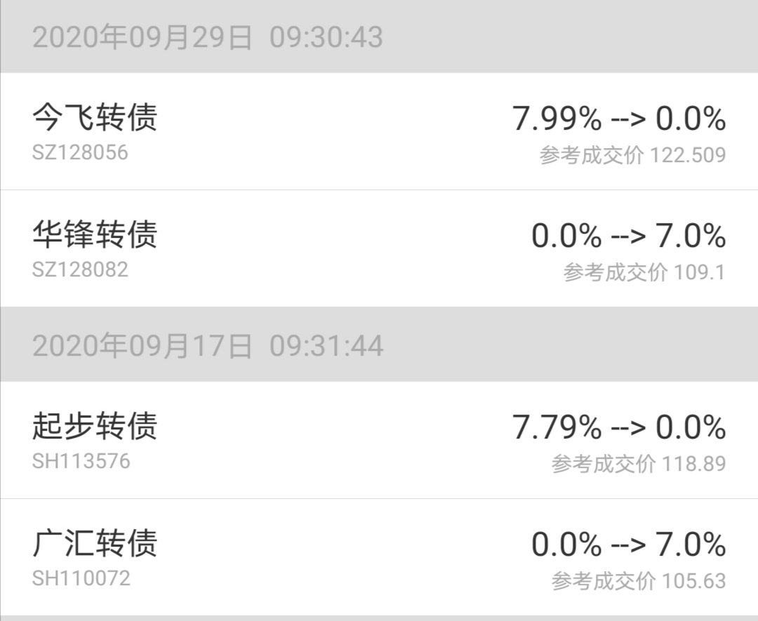 九月,转债的正股同时出现正股连续涨停和连续跌停的情况,分别是起步股份和国城矿业。在连涨连跌时,我刚好都轮进了2只转债。