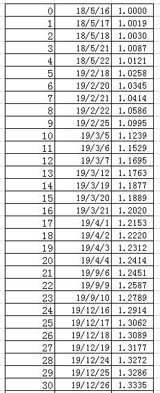 定期轮动周期:半个月或者一个月。半个月后若净值历史新高,则按半个月轮动,否则用一个月轮动。