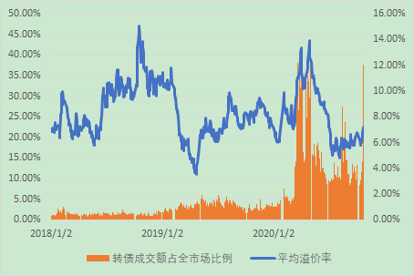 这种情况通常是因为市场情绪造成的,例如转股溢价低的可转债纷纷上涨,引起转股溢价率高的可转债也跟随上涨,并逐渐脱离债券底部。遇到这种情况,应及早兑现利润出局,因为一旦市场情绪转换,这些转债将是杀跌的首选。