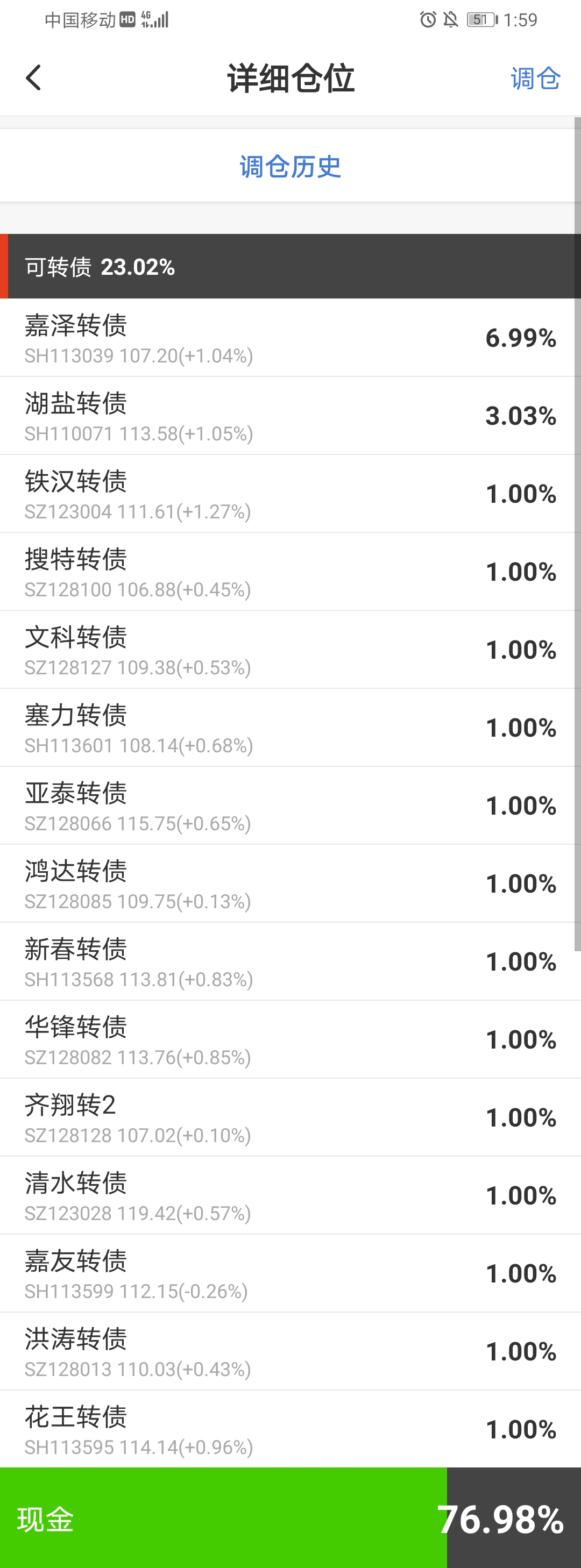 对我来说重仓的单只转债占我总仓位的2%~3%是极限,纯粹和大家做投资思路的探讨,拿花王当话题的觉得在忽悠麻烦把我拉黑,谢谢