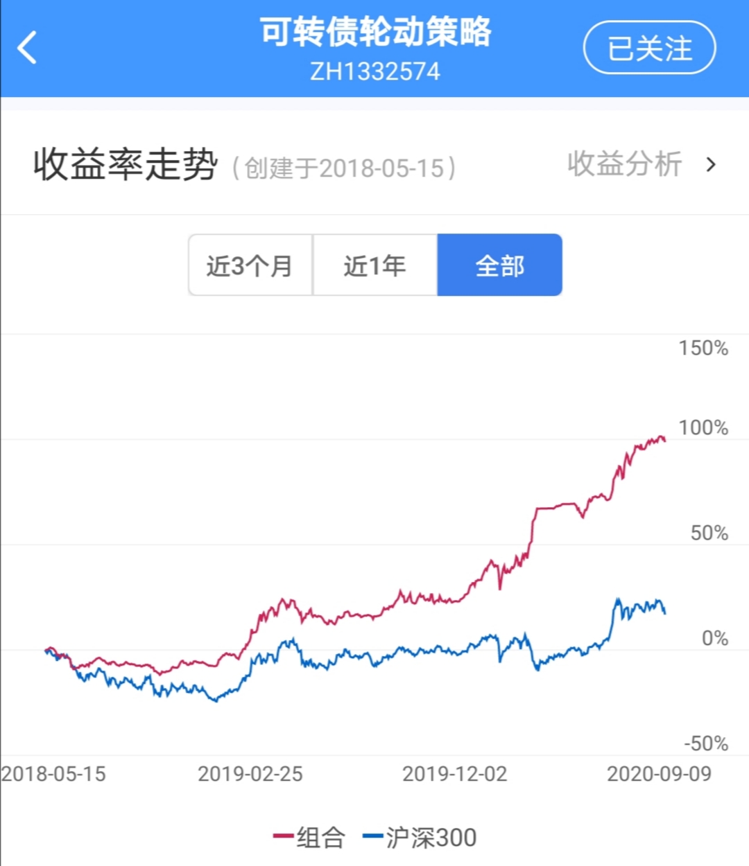 上涨跟随沪深300,下跌超越沪深300是策略的长期目标。