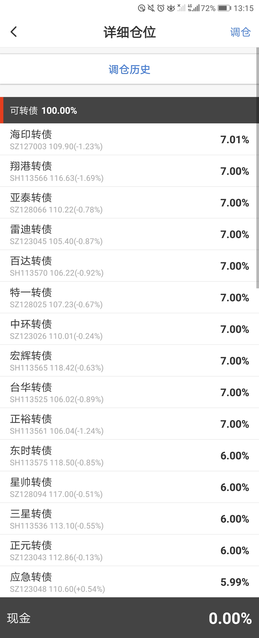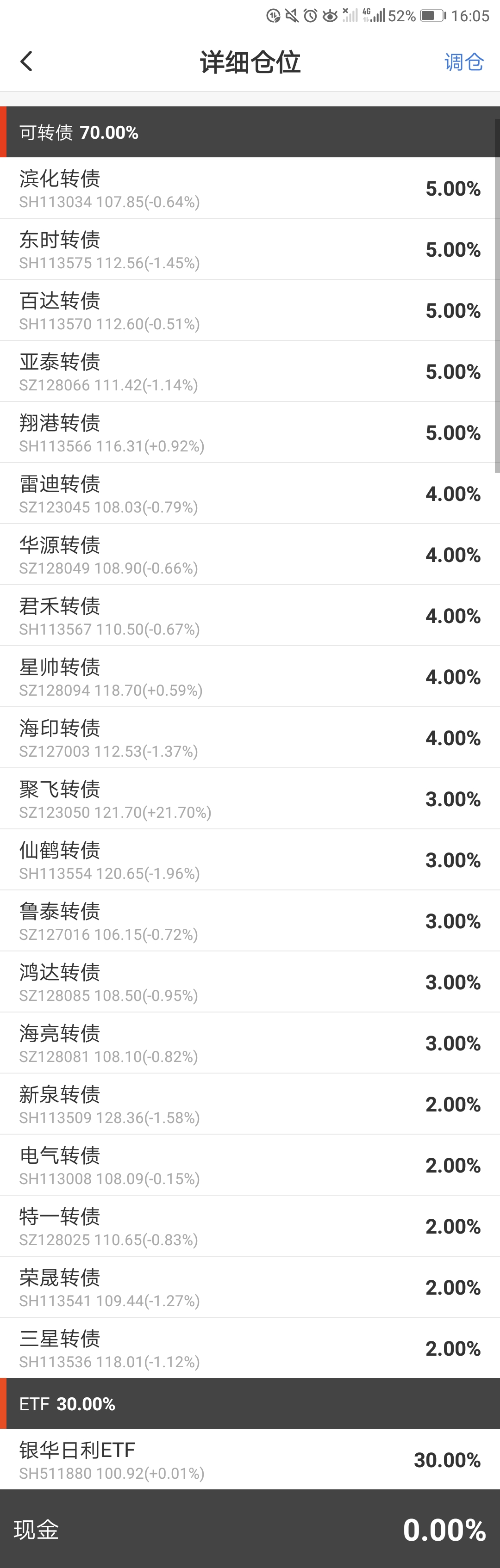 上午大神说可转债高估,清仓了,晚间就有新闻“上交所:将可转债交易情况纳入重点监控”。是不是有内幕消息?还好今天忍住诱惑,清仓80%的可转债。
