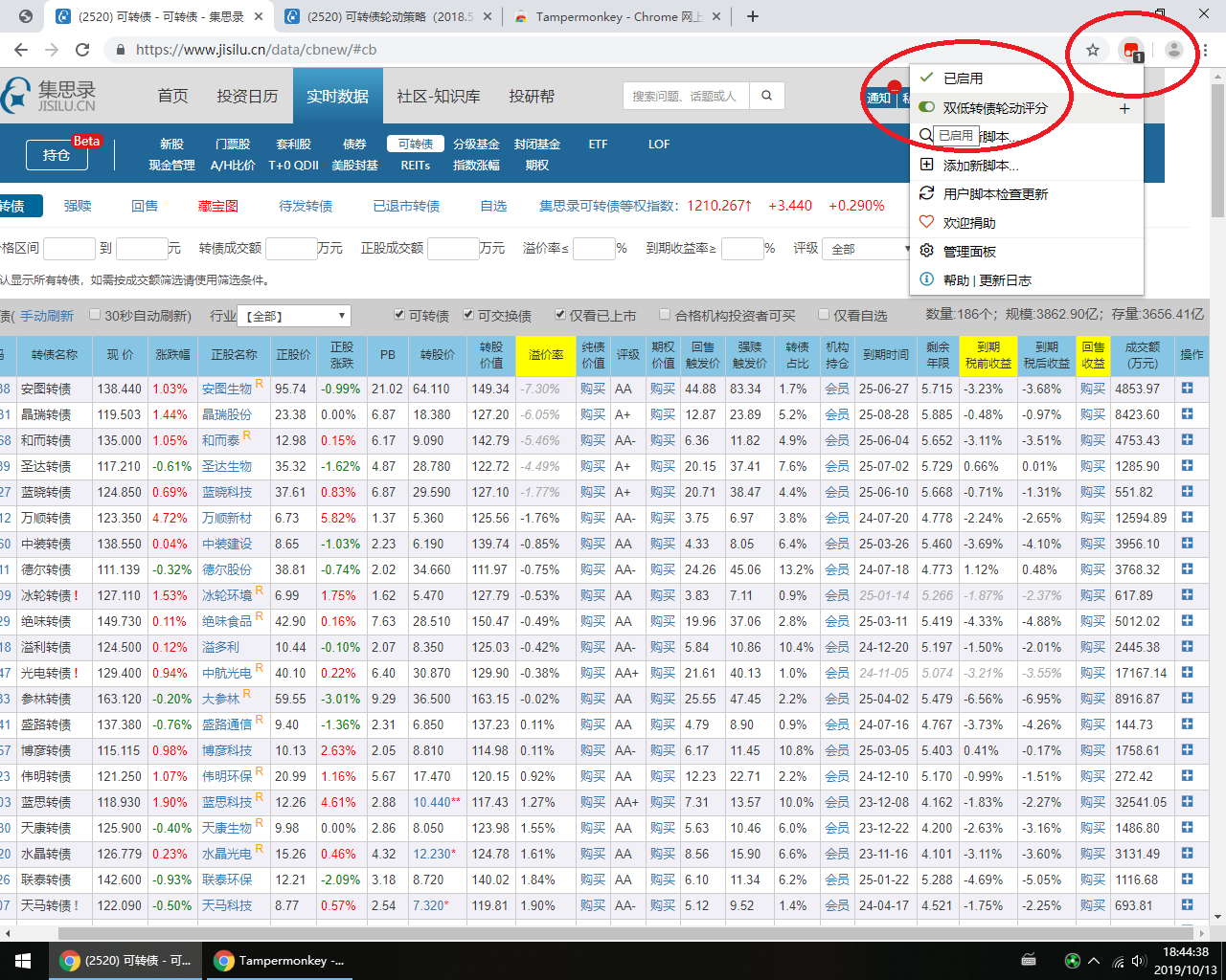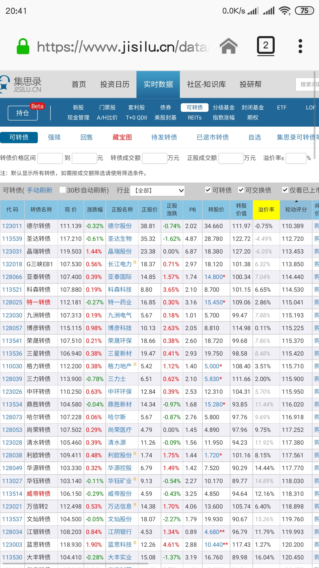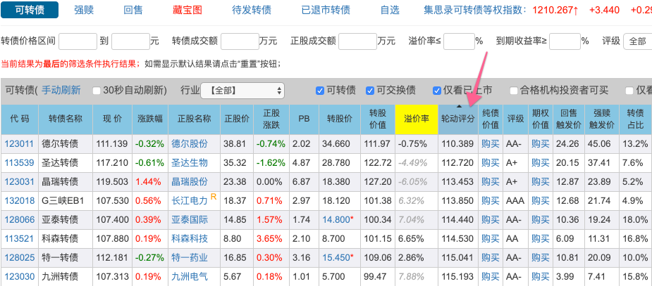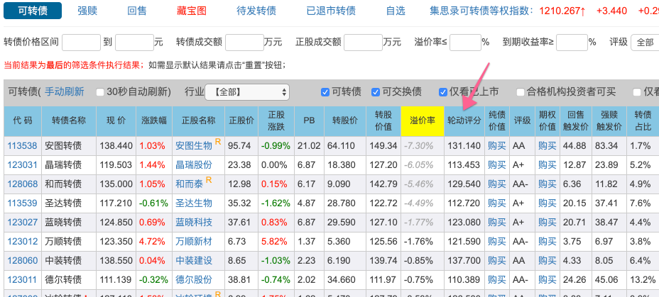 对可转债价格和溢价率*100进行相加,值越小排名越排前。统计结果如下