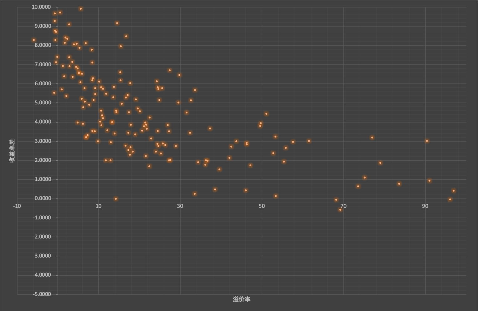 可转债可以根据可转债价格和转股溢价率分成四个象限。我们的策略就在建仓象限1。