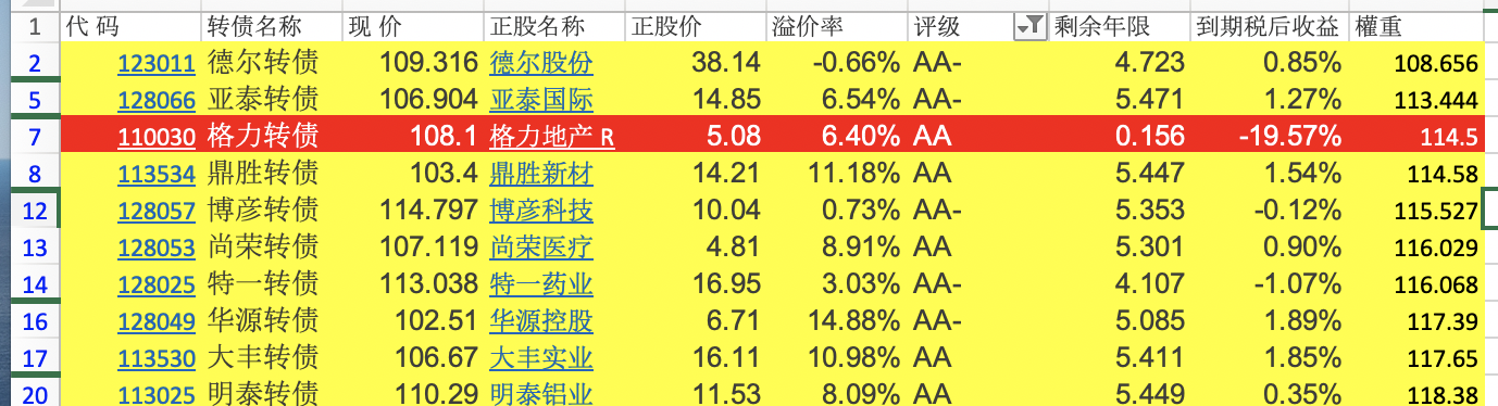 18 110030 格力转债 ! 105.66 10.75% 116.41 AA