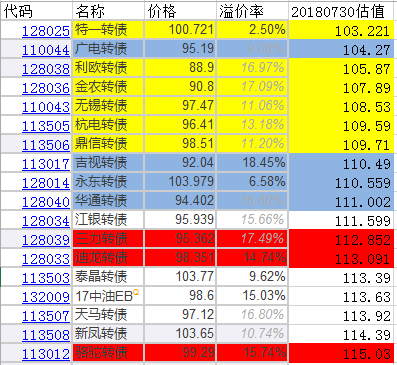 排名 代 码 转债名称 现 价 溢价率 估值 评级 剩余时间 备注