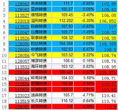 32 128048 张行转债 104.466 8.69% 113.156 AA+ 5.389
