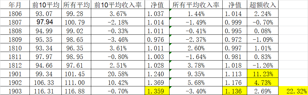 定期轮动周期:半个月或者一个月。半个月后若净值历史新高,则按半个月轮动,否则用一个月轮动。