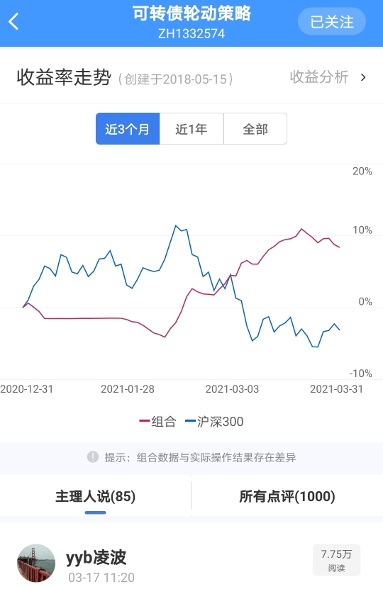 我是支持实时公布调仓的,有人会提前判断,有人错过脉冲,也有人跟车。都是个人选择,选择省事就别介意承担风险。而且错过脉冲未必吃亏,跟车未必抬轿。我跟车就有过几次卖得更高,买得便宜的经历。当然更多的时候也抬轿,不过我上班的时候图省事也愿意承担这个抬轿的成本。