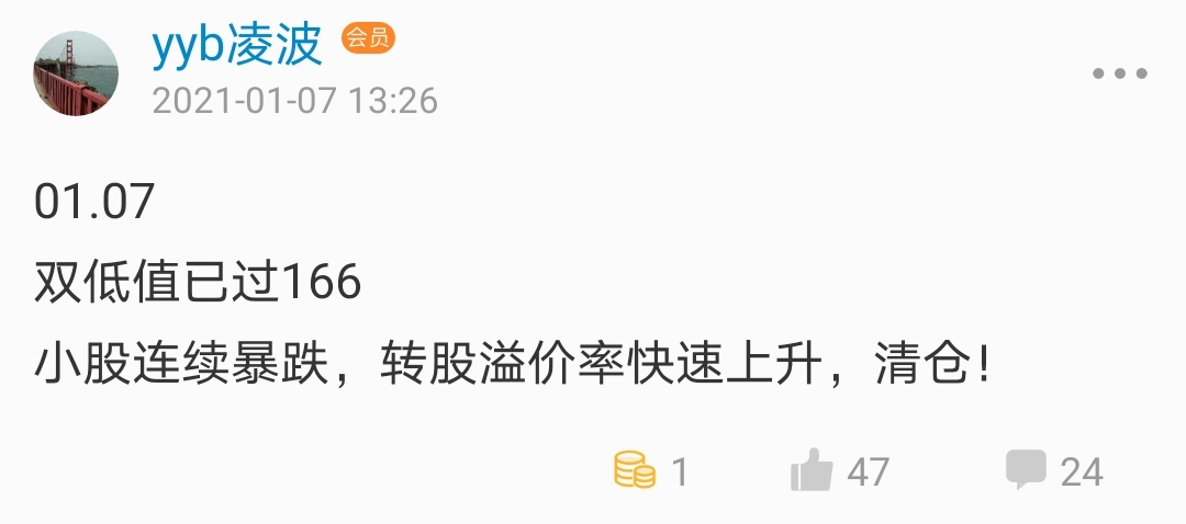已满仓者,双低值大于165可开始减仓,大于170则清仓。