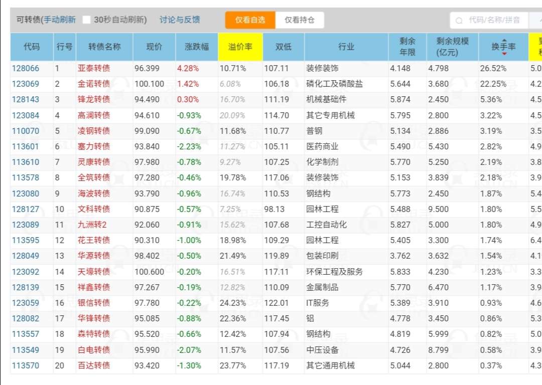 转股溢价率下降到6.931%,华锋最新双低值111.52,双低排名从228名上升到17名。