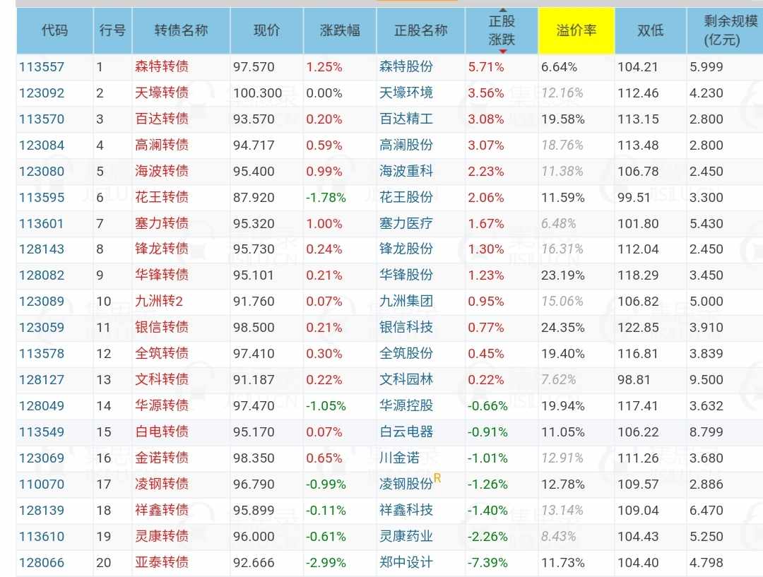 进攻方面:随着花王正股涨停,华锋下调到底,组合的转股溢价率进一步下降。