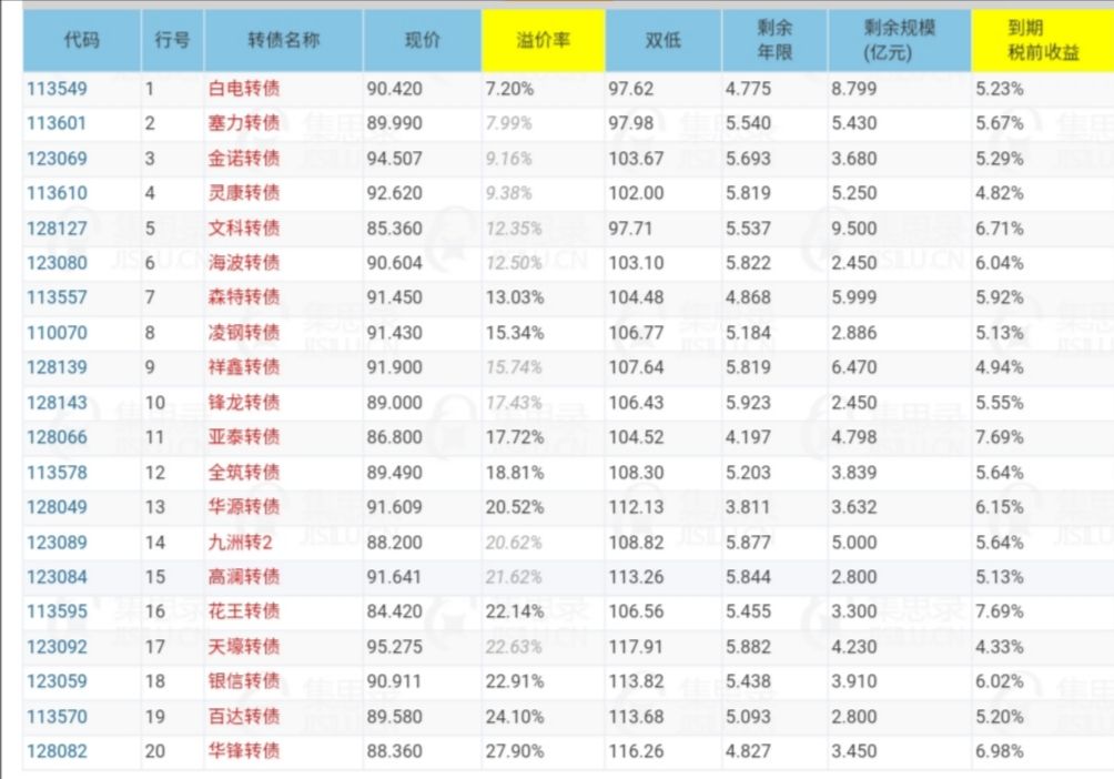 截止今天收盘,可转债一共334个,其中90以下17个,90-100元90个,一百以下占比约三分之一。税后收益率超过5%的32个,占比9.6%。
