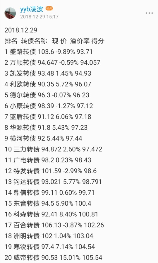 对可转债价格和溢价率*100进行相加,值越小排名越排前。统计结果如下