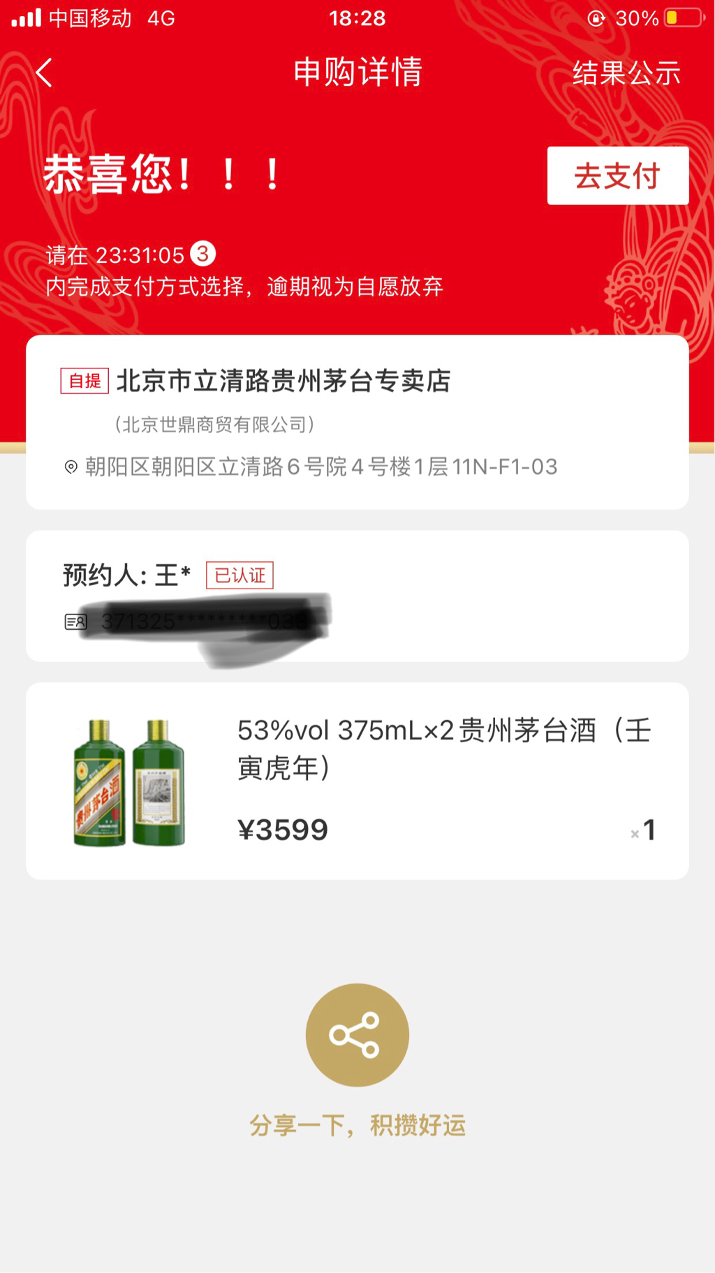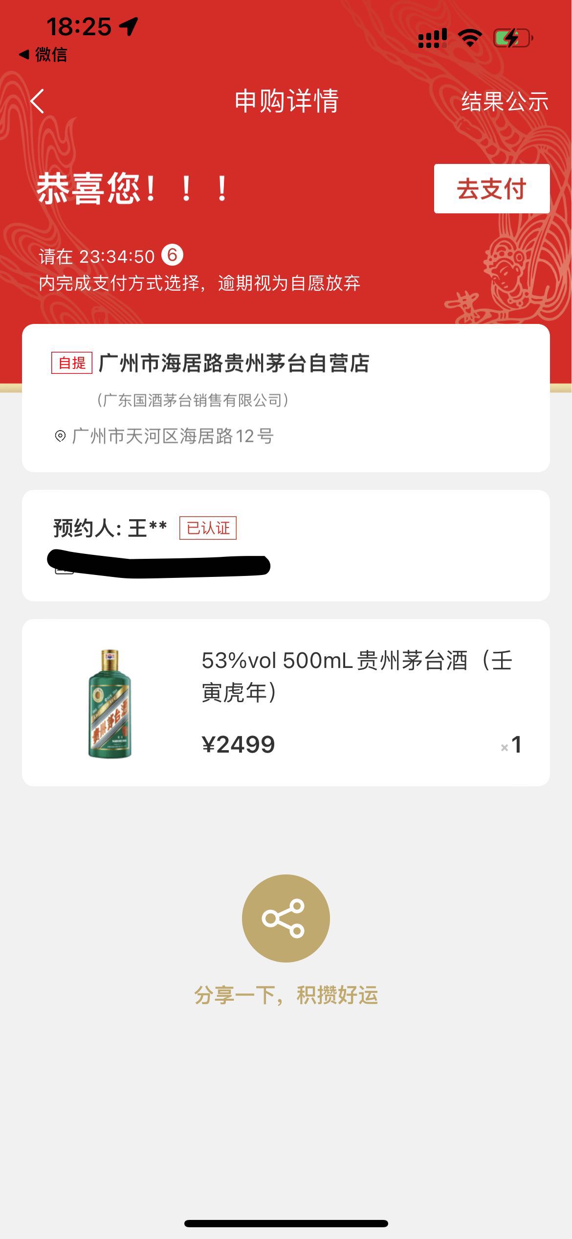 给大家鼓鼓劲,家里4个账号,从7月开始申购,到今天中了3瓶虎茅了。