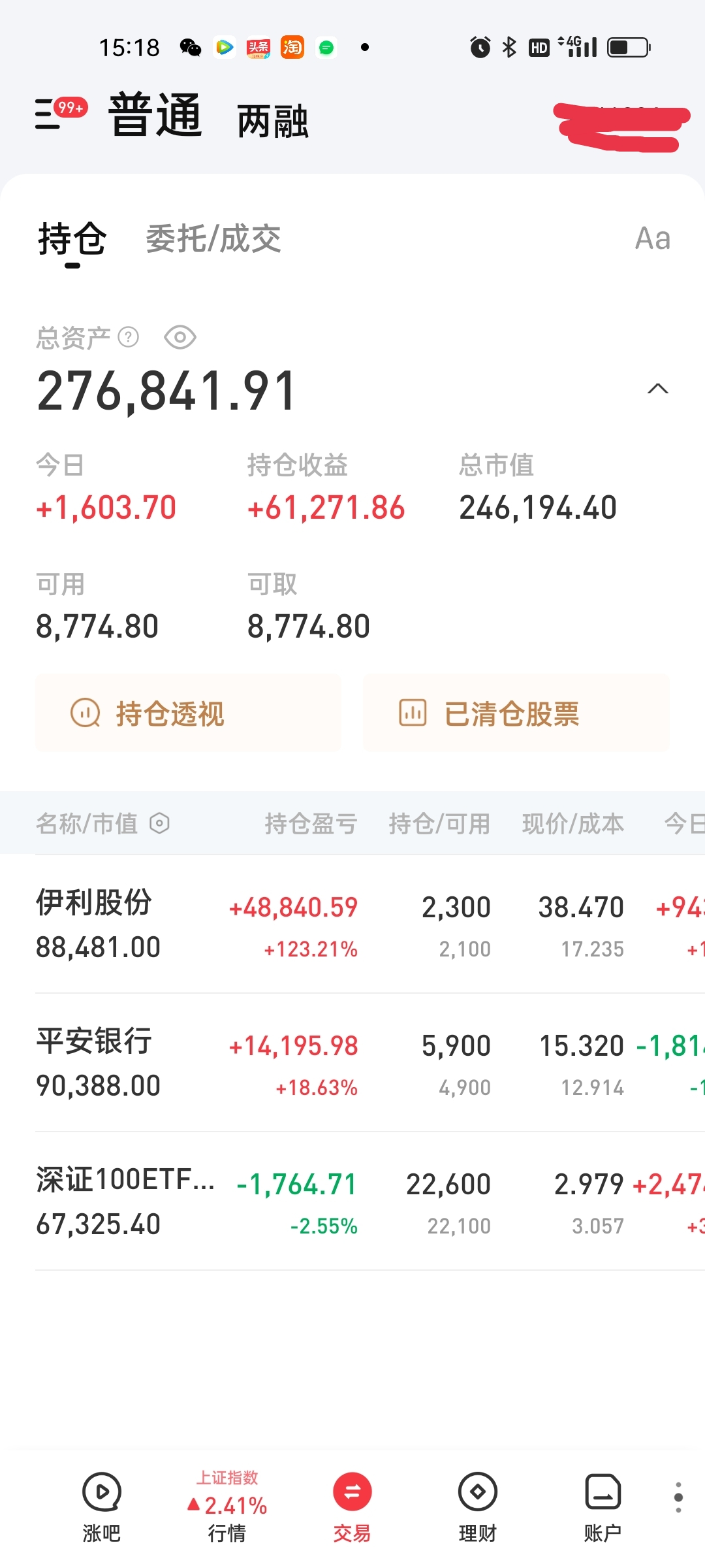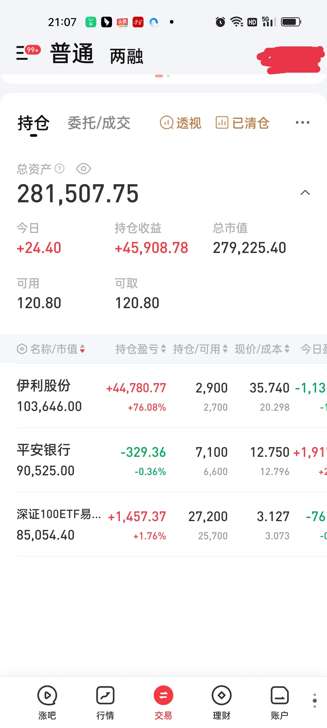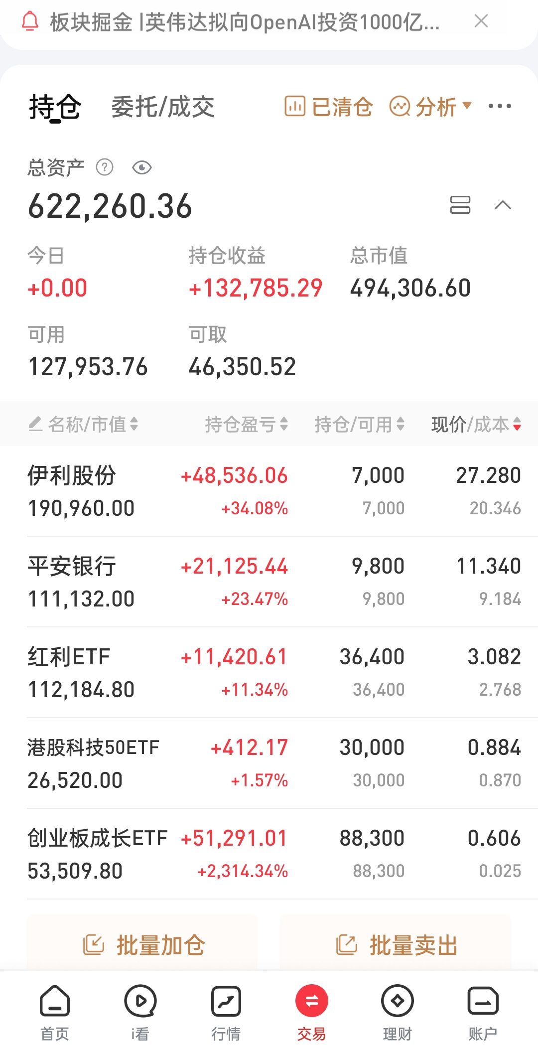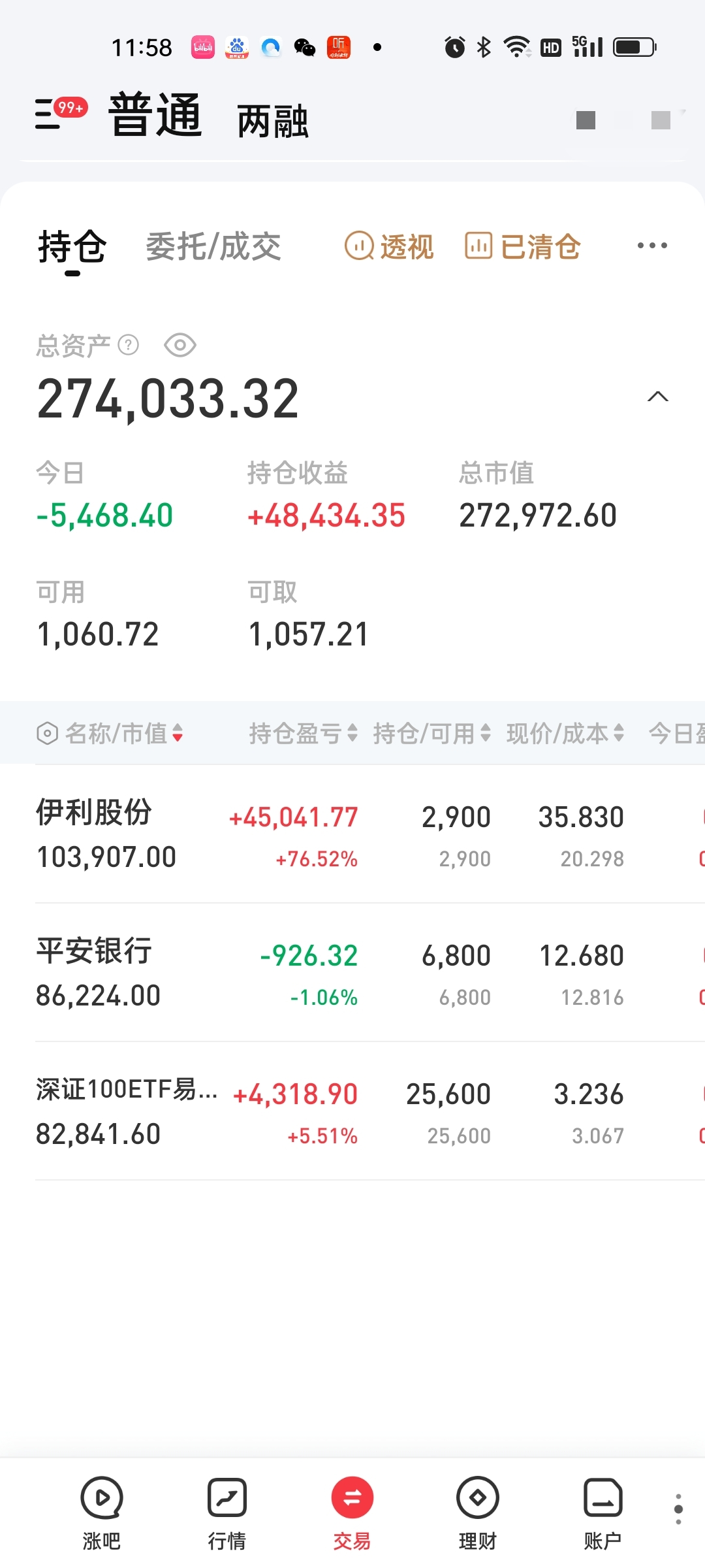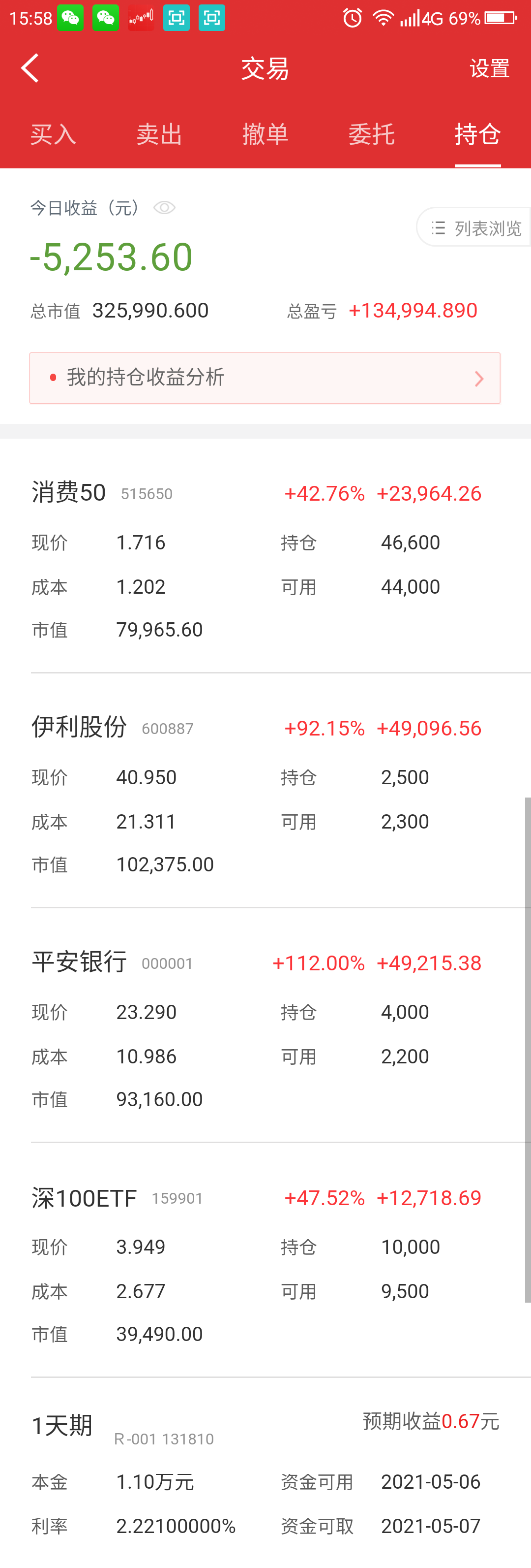 平安银行和伊利股份依然在底部慢悠悠墨迹。新加了部分港股科技etf,账户攻守平衡一下。