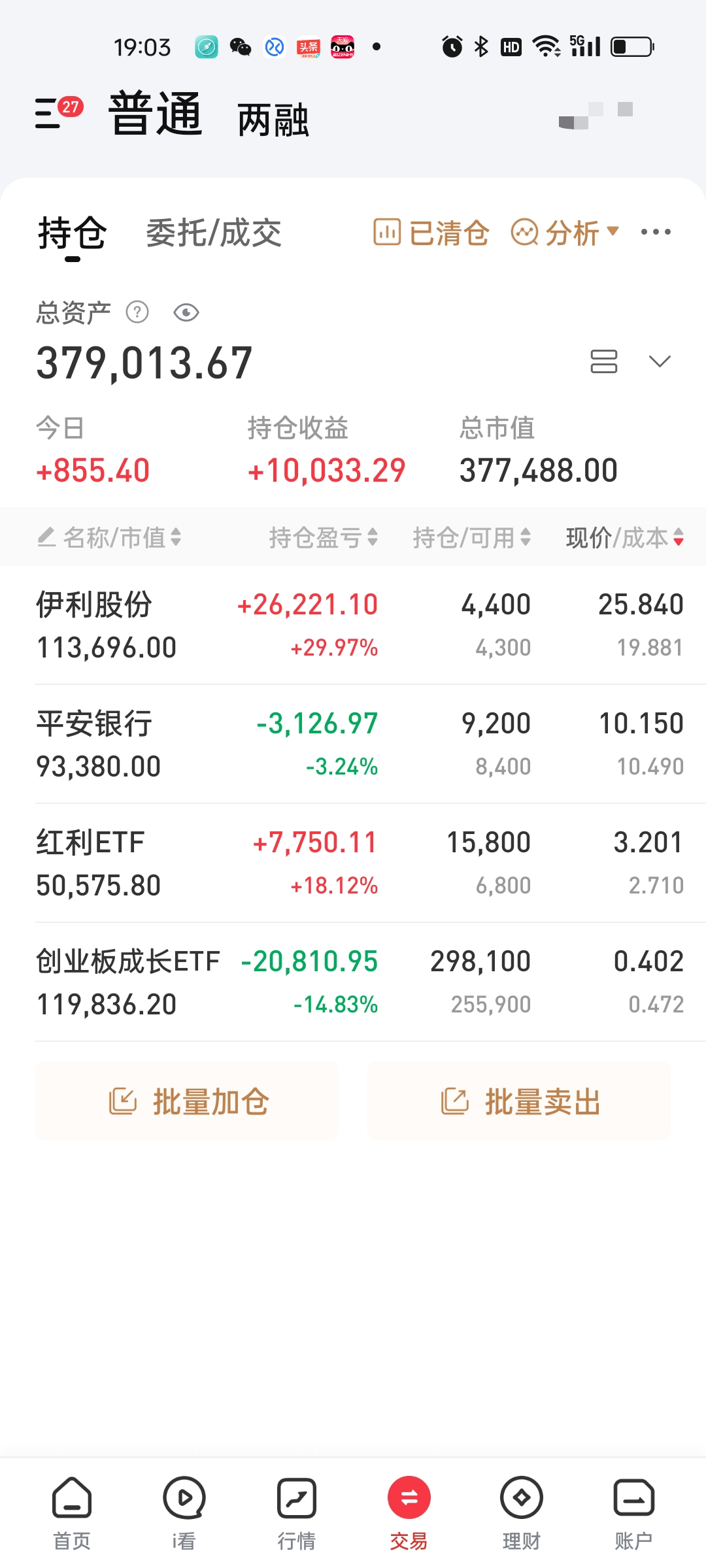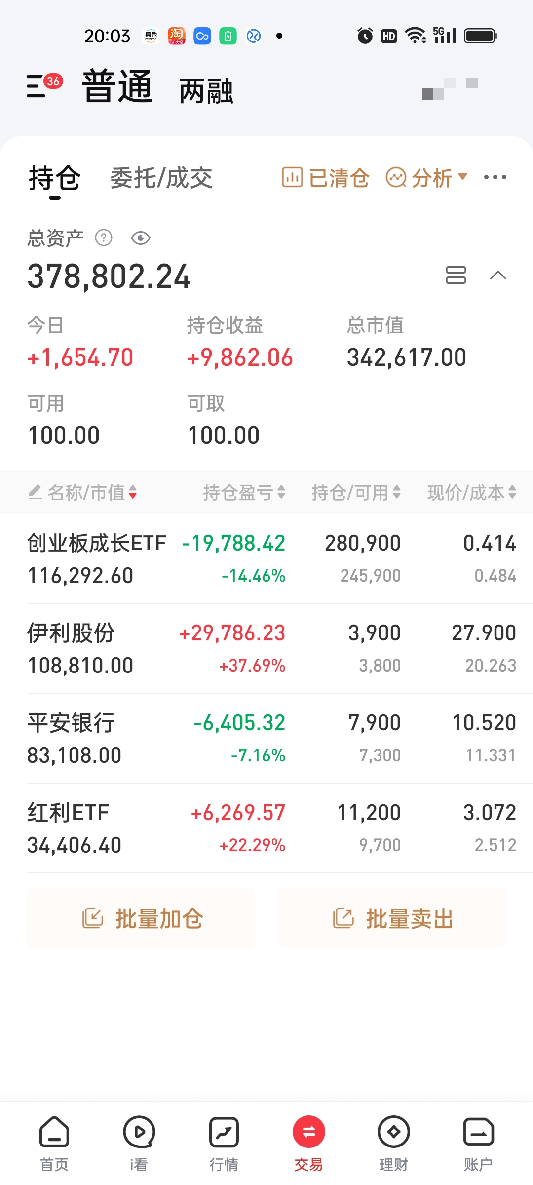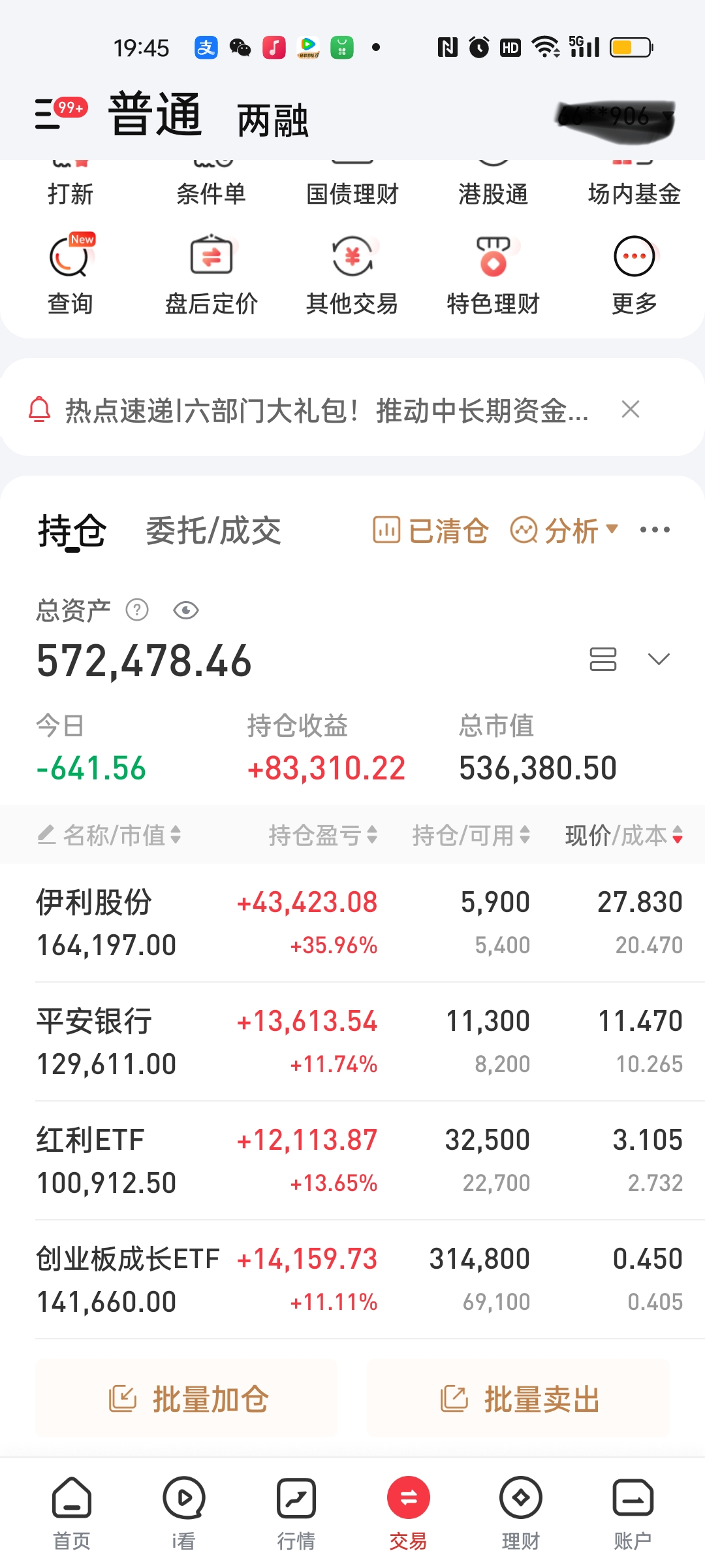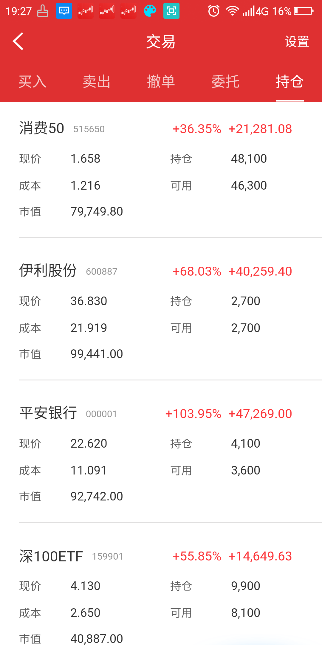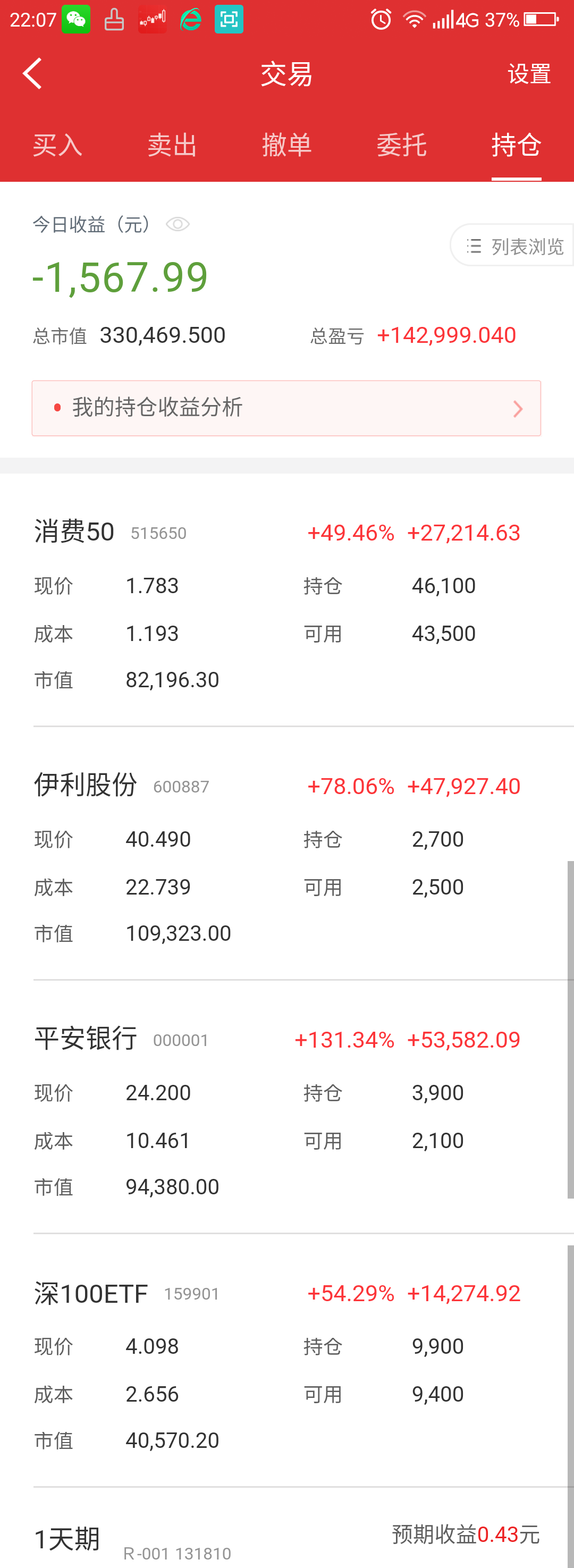 平安银行和伊利股份依然在底部慢悠悠墨迹。新加了部分港股科技etf,账户攻守平衡一下。