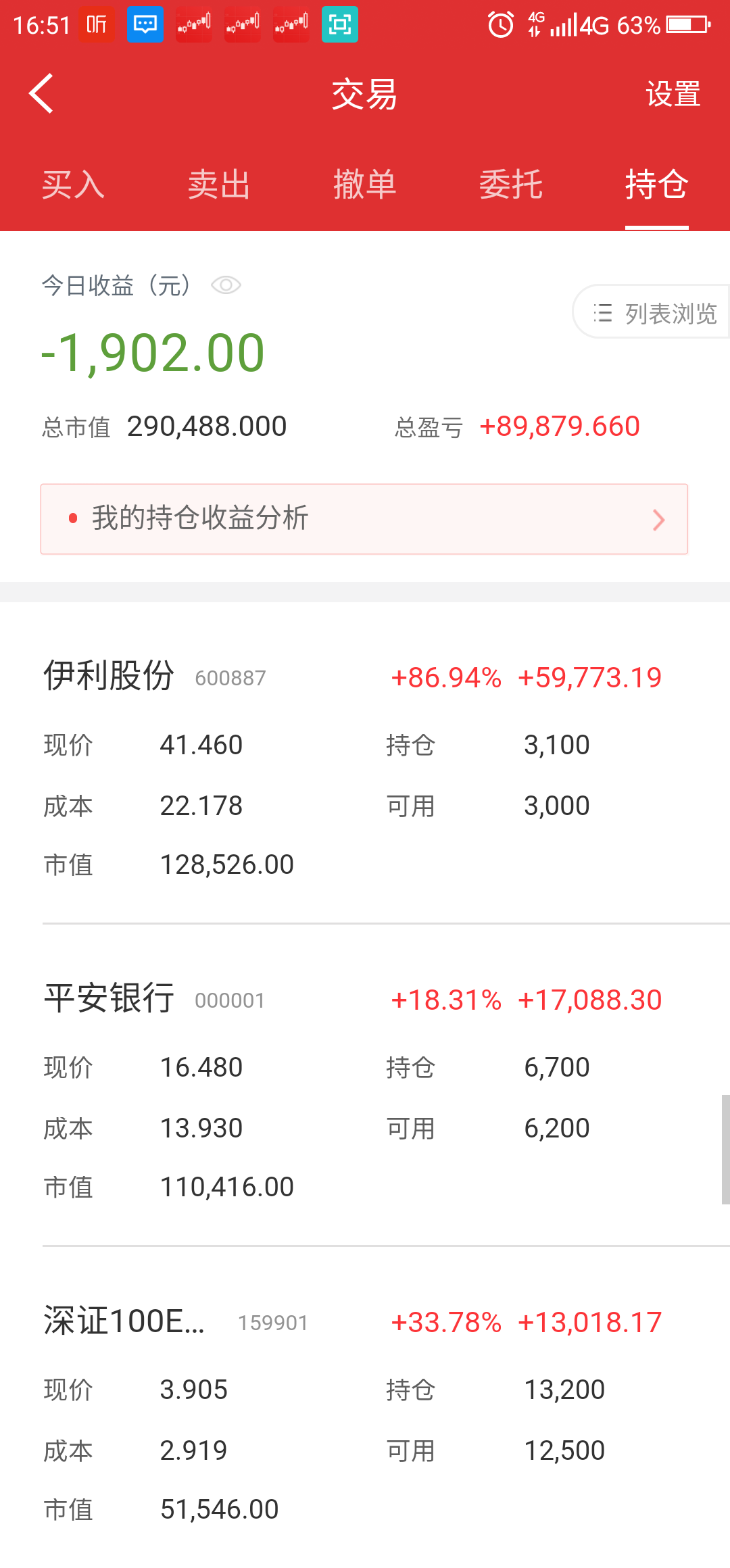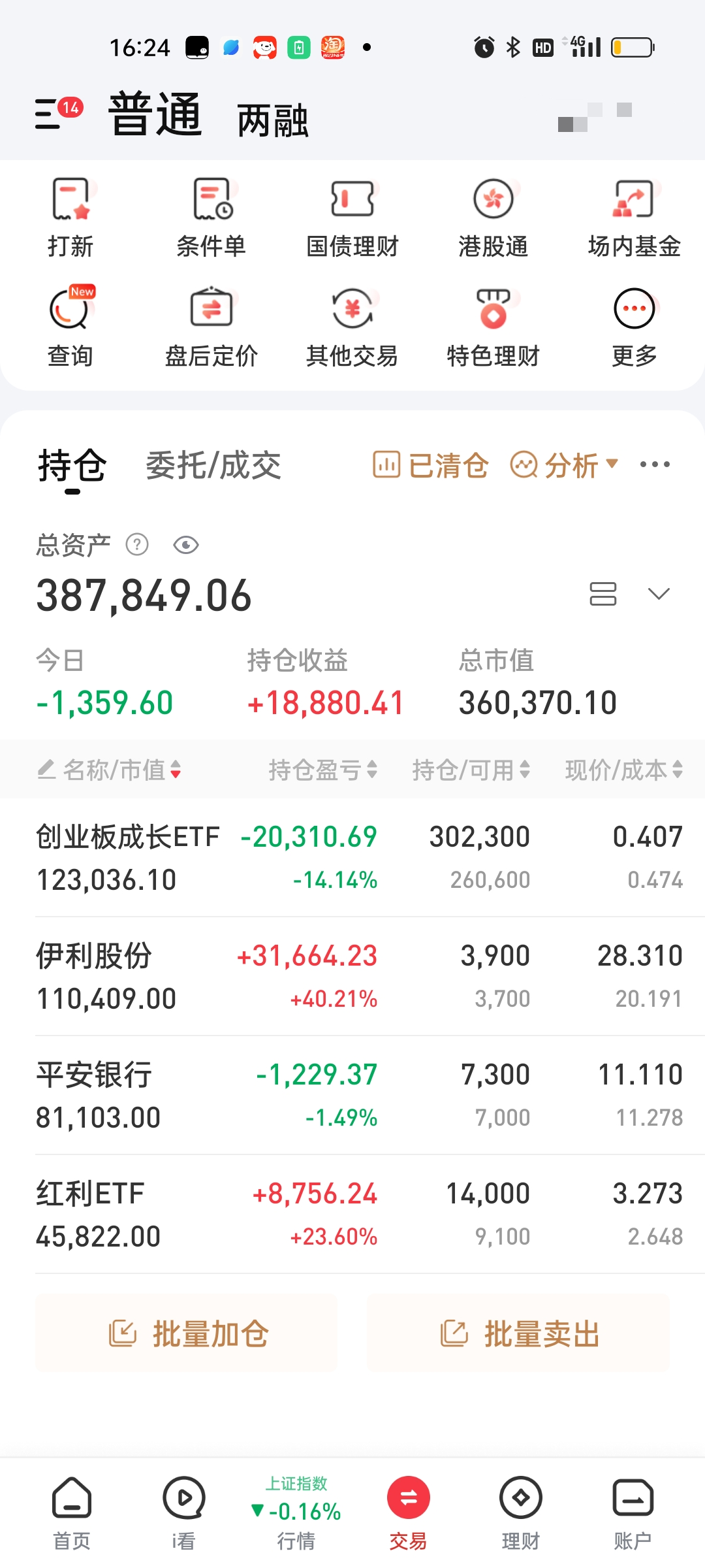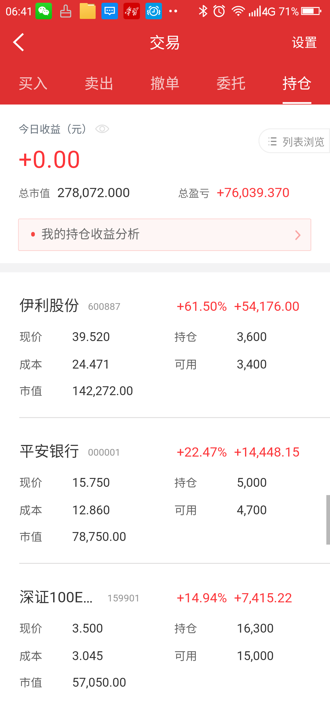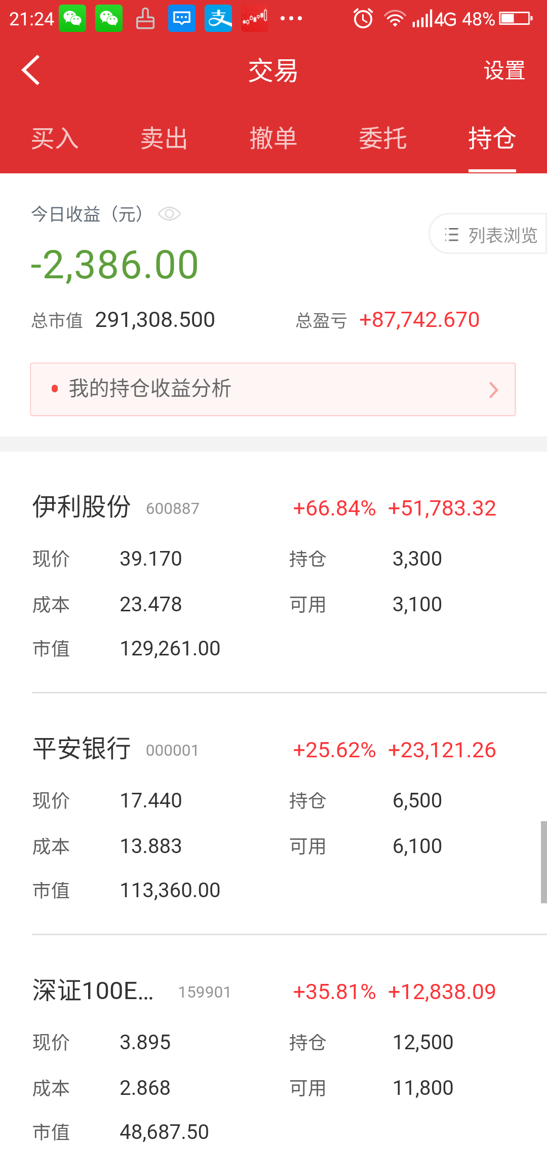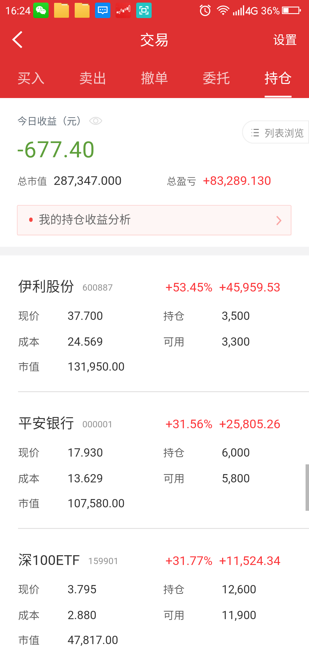 平安银行和伊利股份依然在底部慢悠悠墨迹。新加了部分港股科技etf,账户攻守平衡一下。