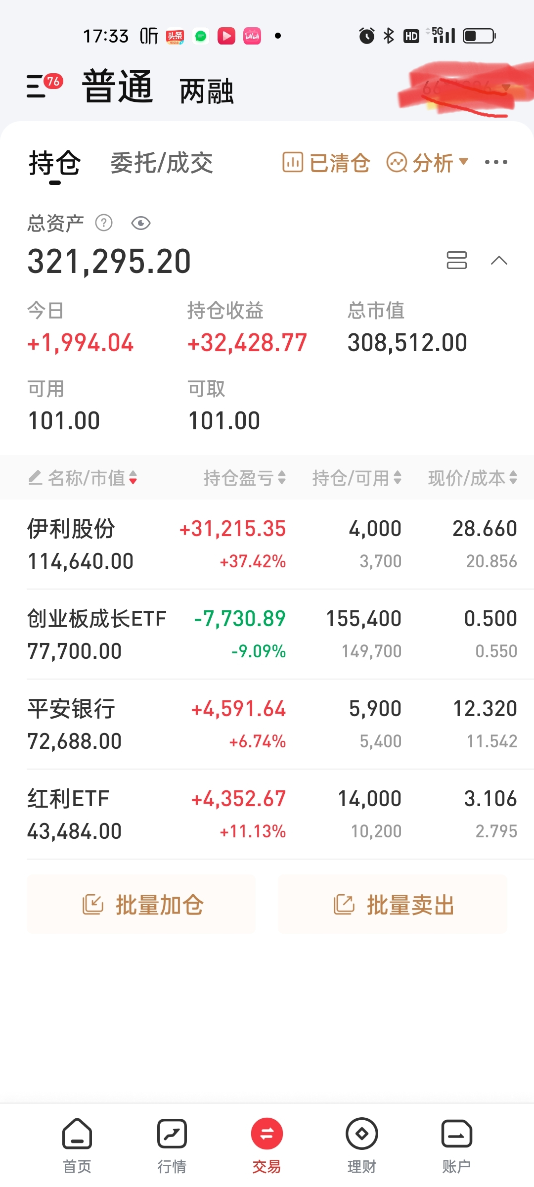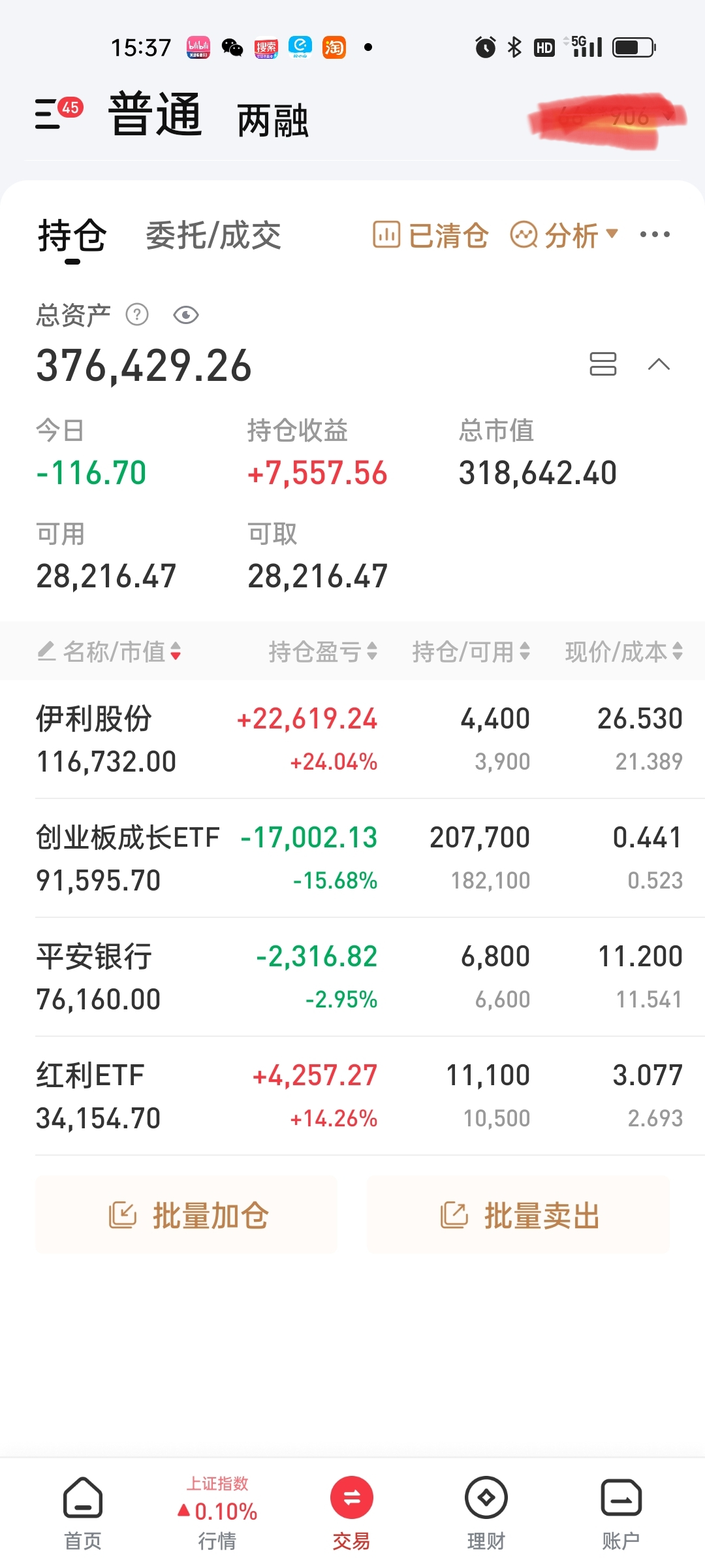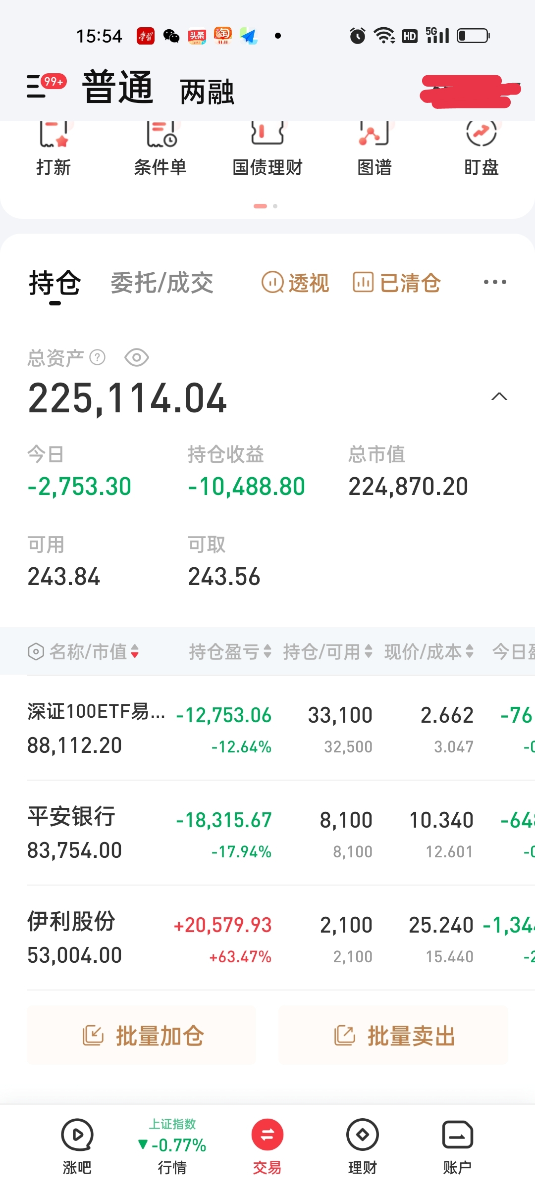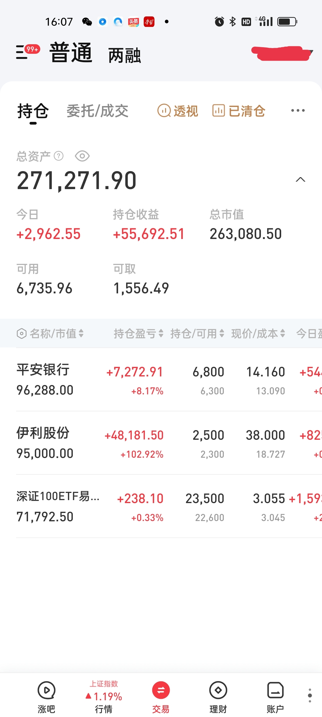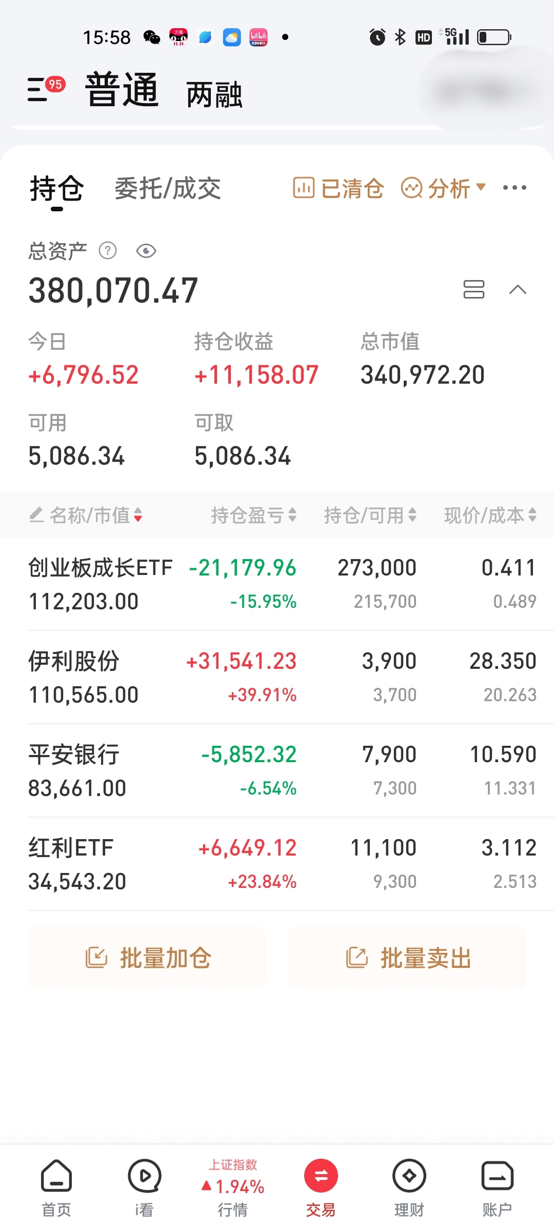 平安银行和伊利股份依然在底部慢悠悠墨迹。新加了部分港股科技etf,账户攻守平衡一下。