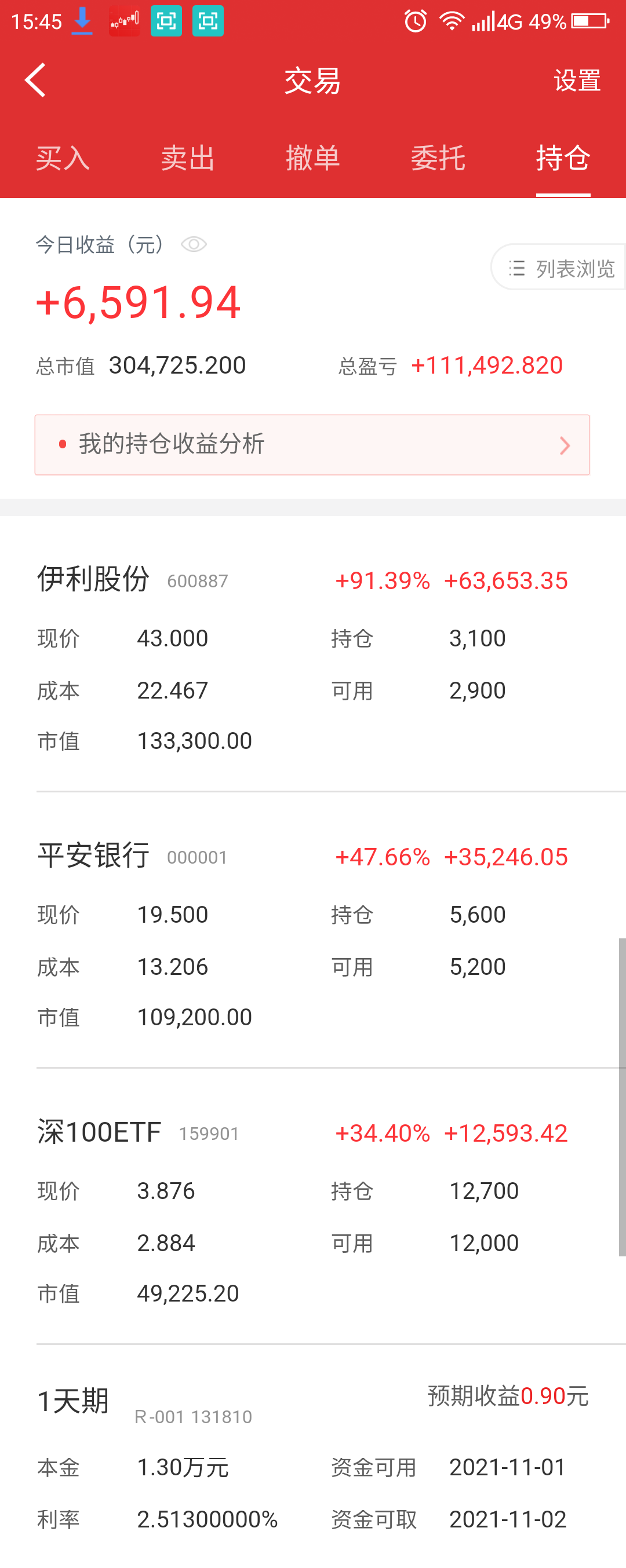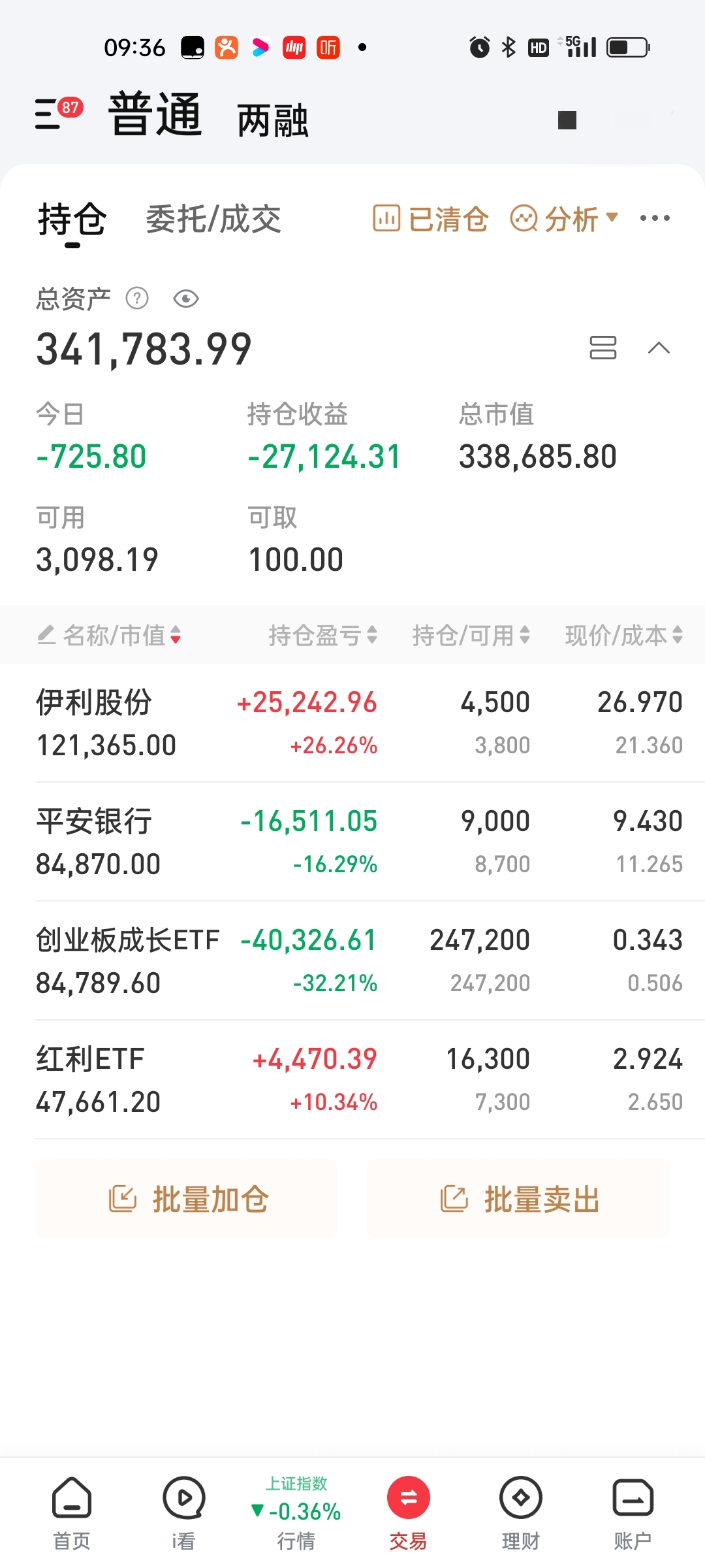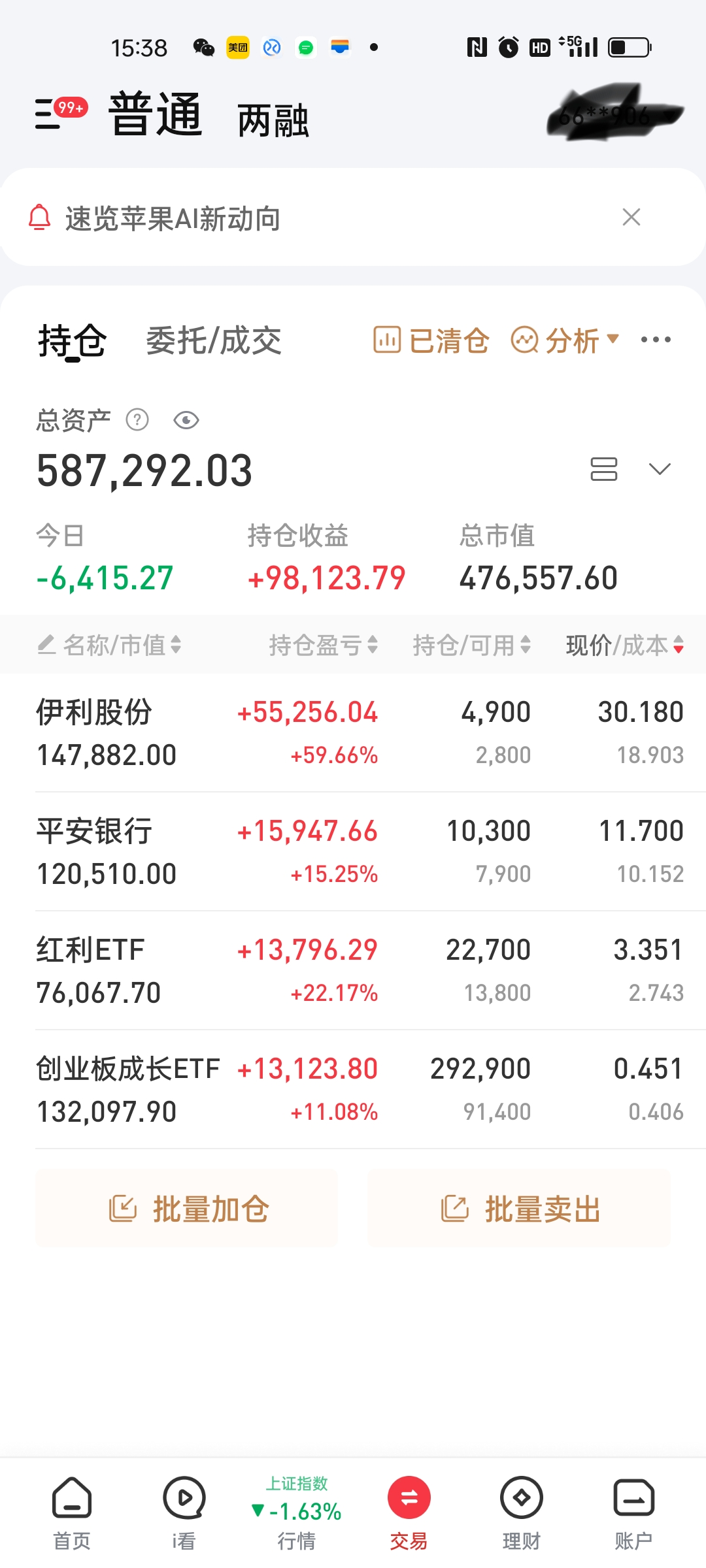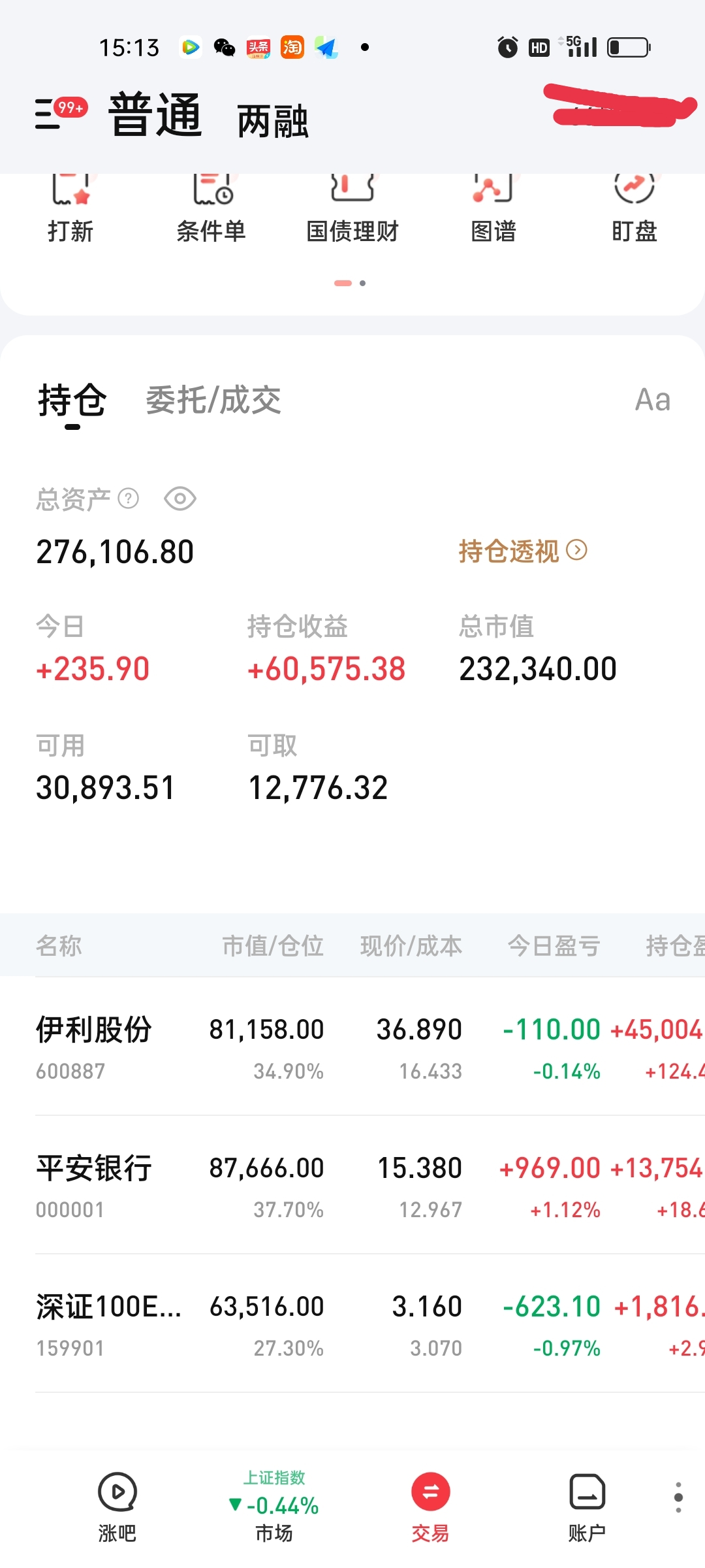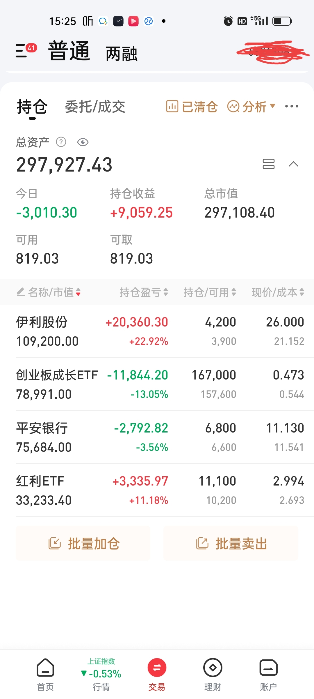 平安银行和伊利股份依然在底部慢悠悠墨迹。新加了部分港股科技etf,账户攻守平衡一下。