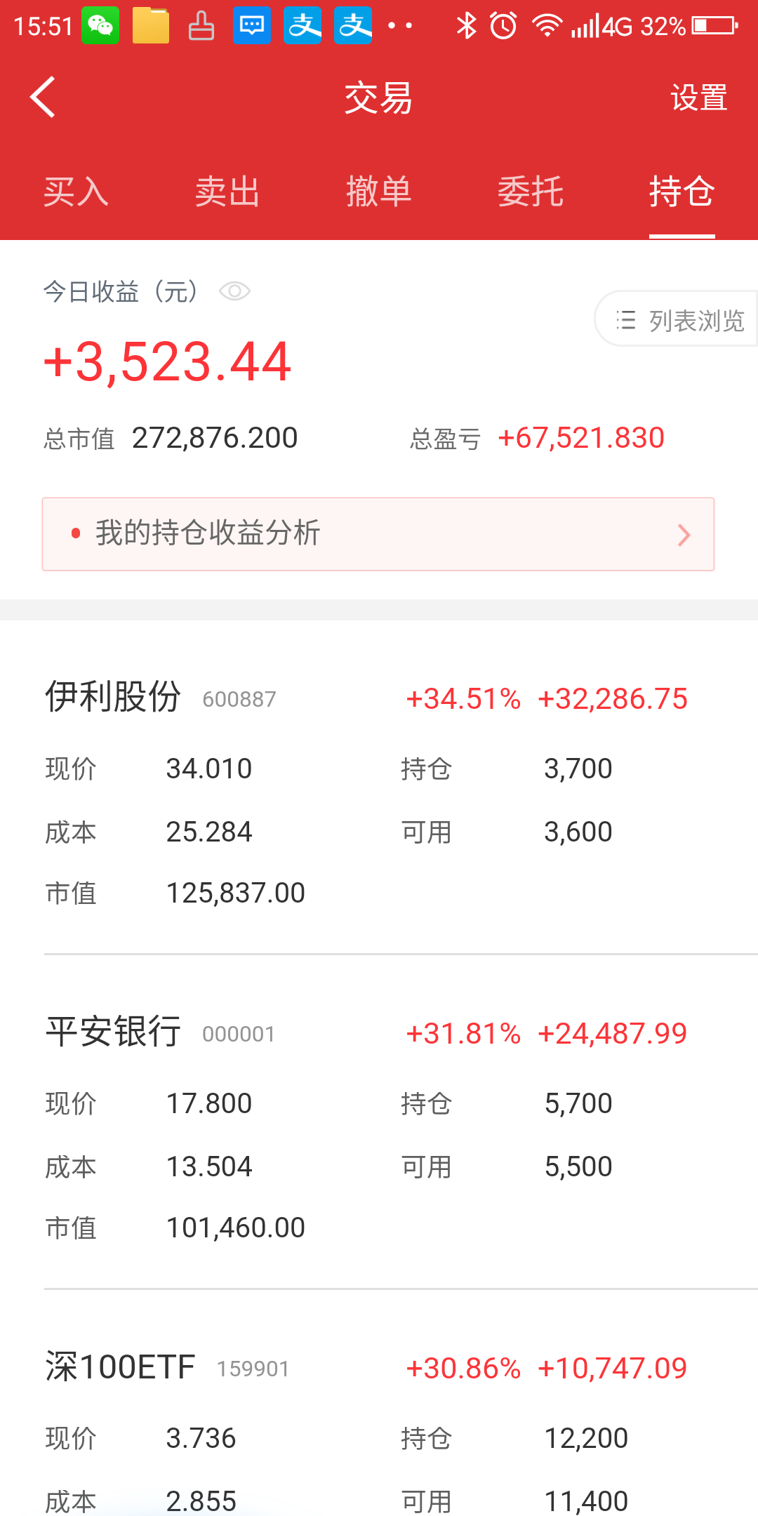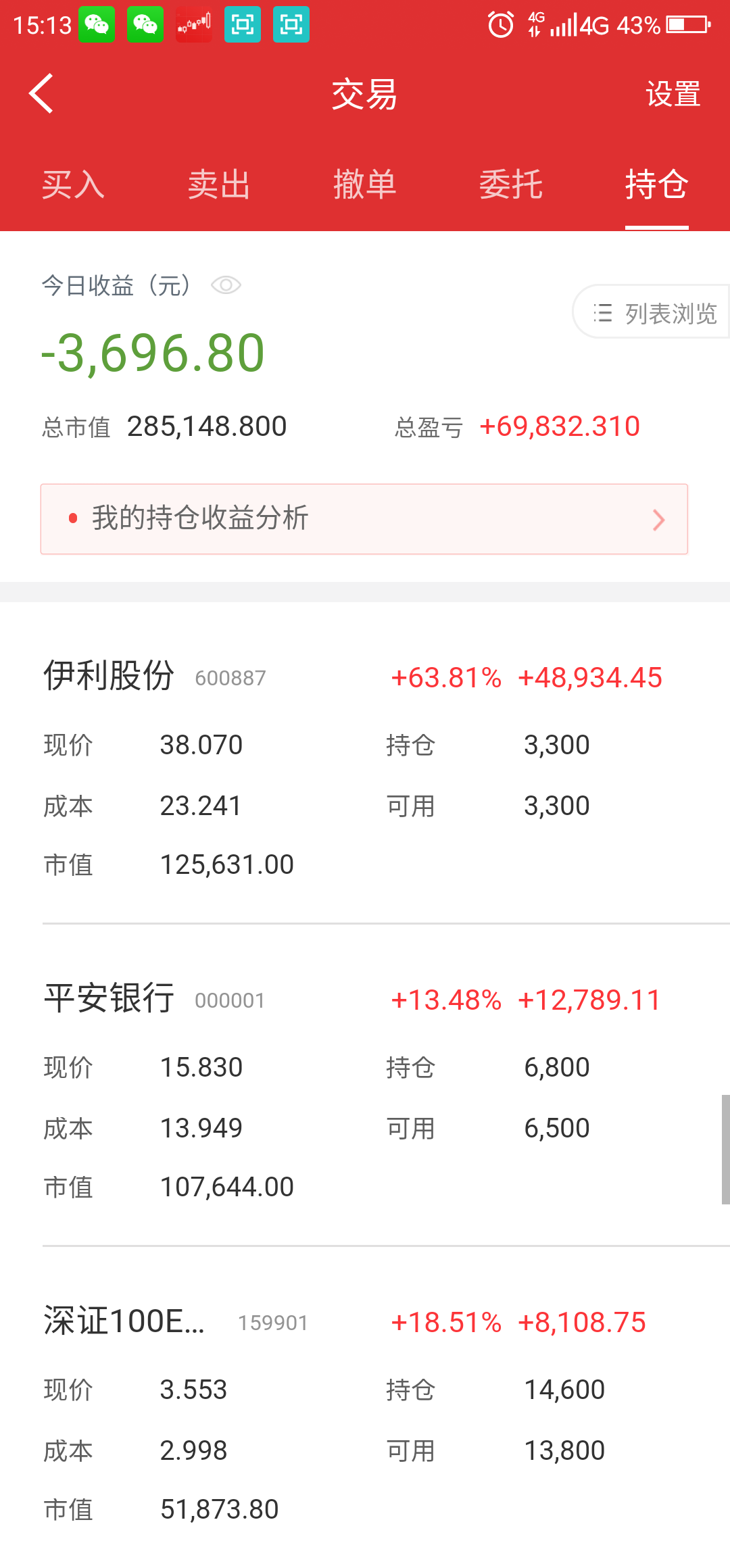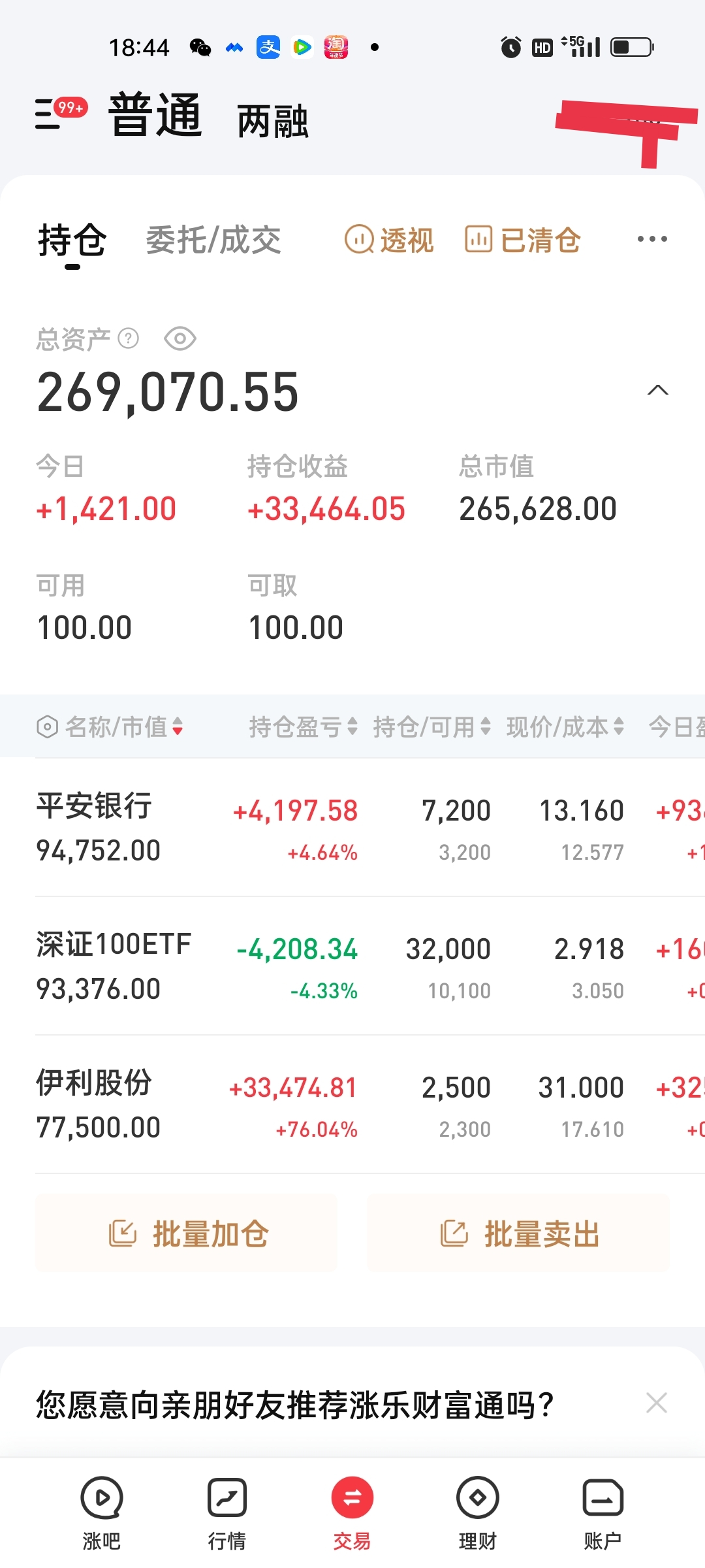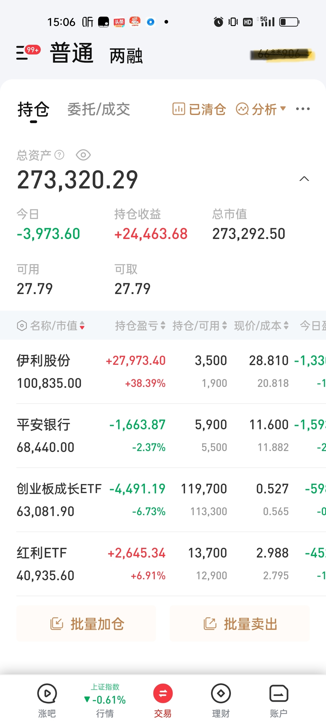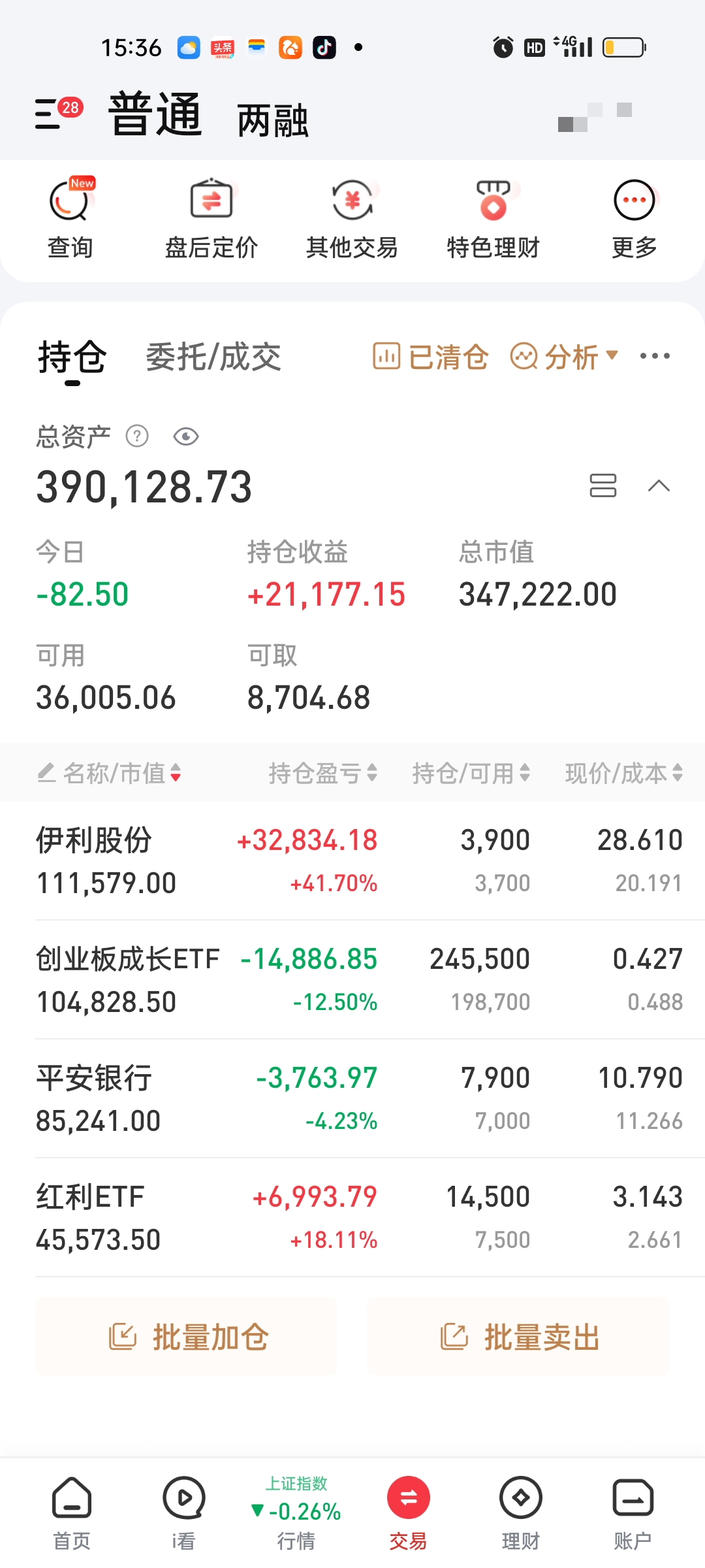 平安银行和伊利股份依然在底部慢悠悠墨迹。新加了部分港股科技etf,账户攻守平衡一下。