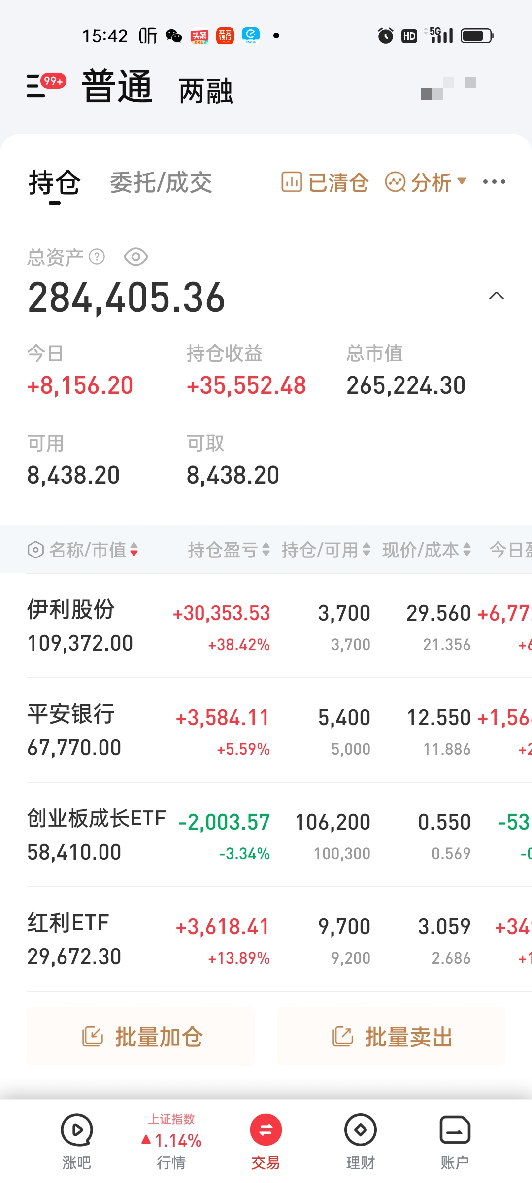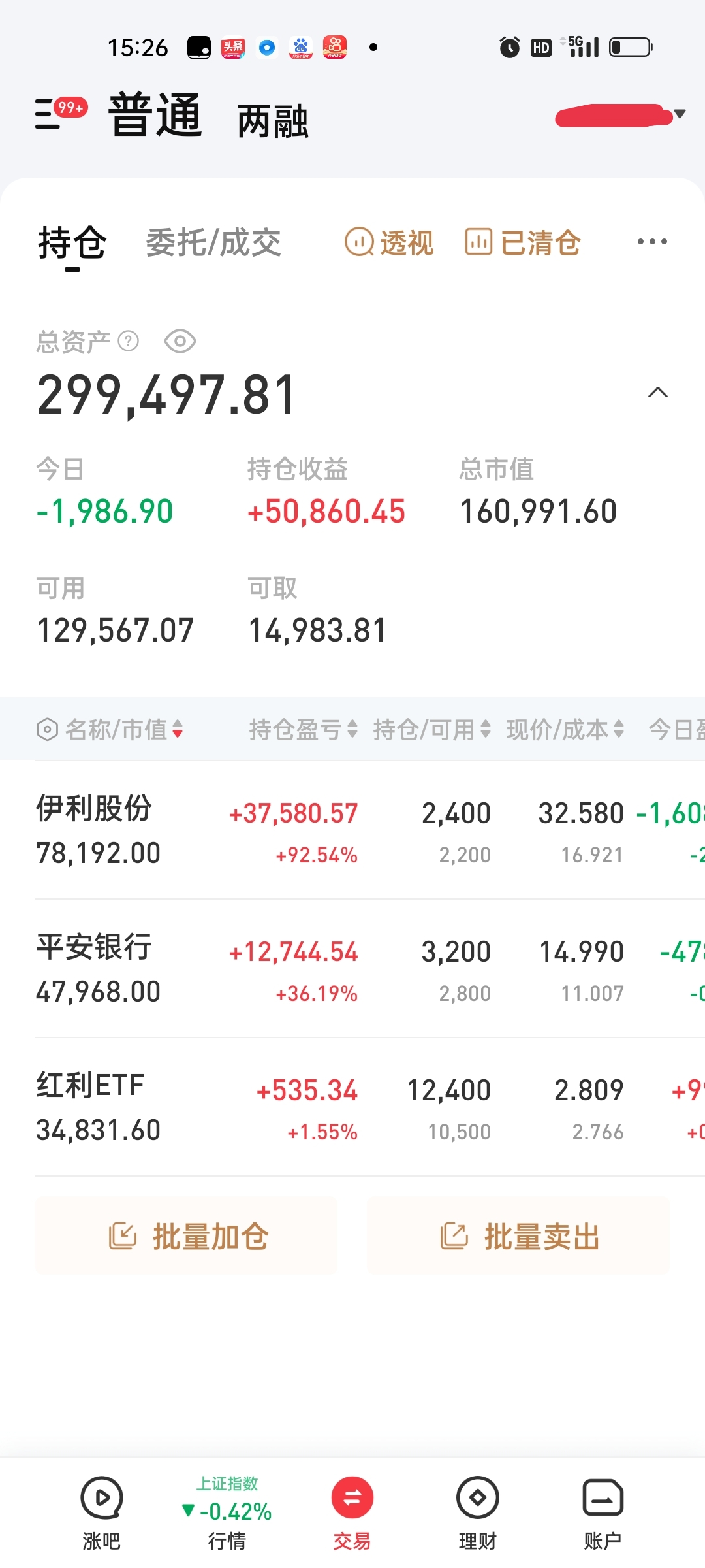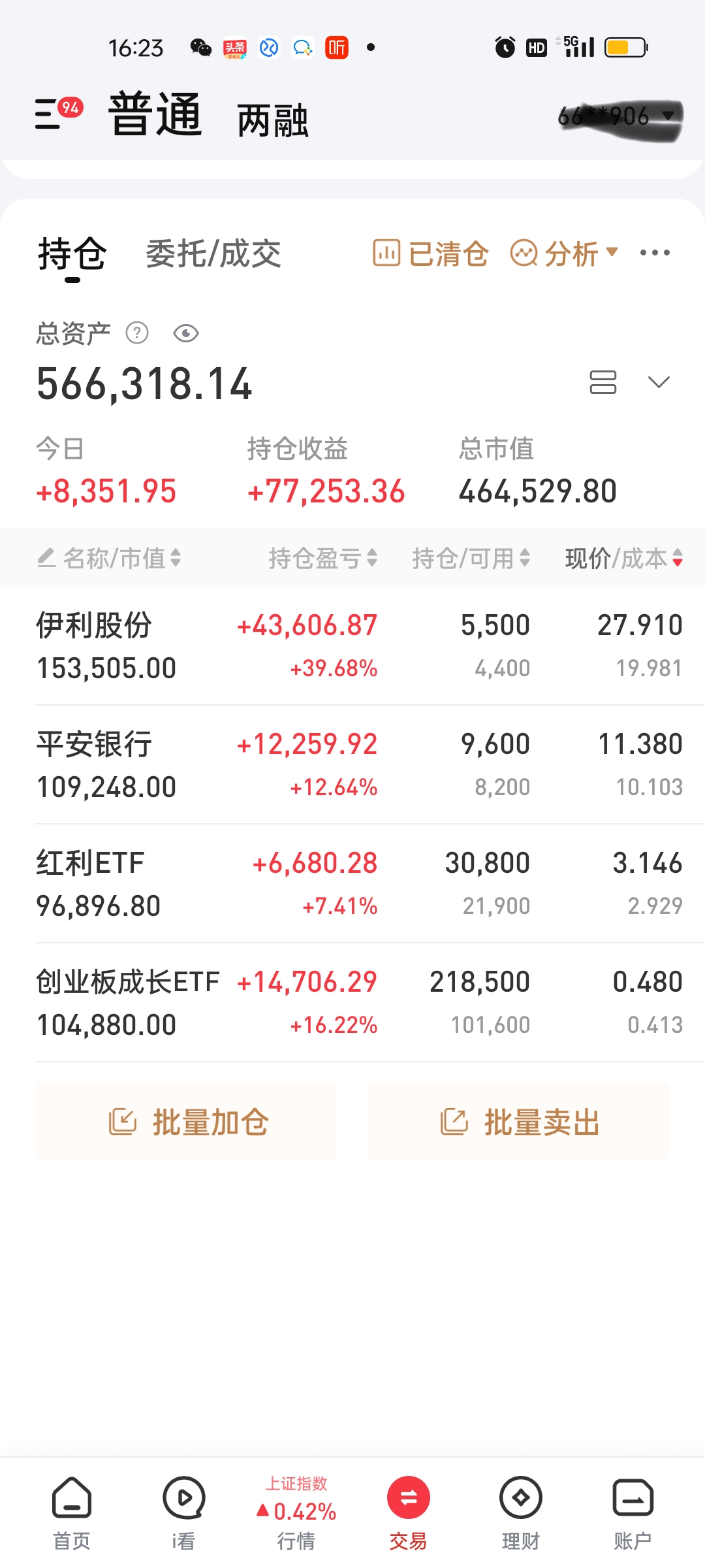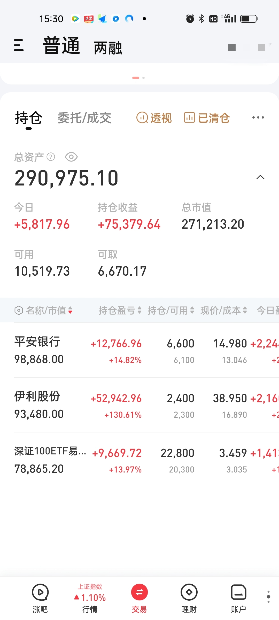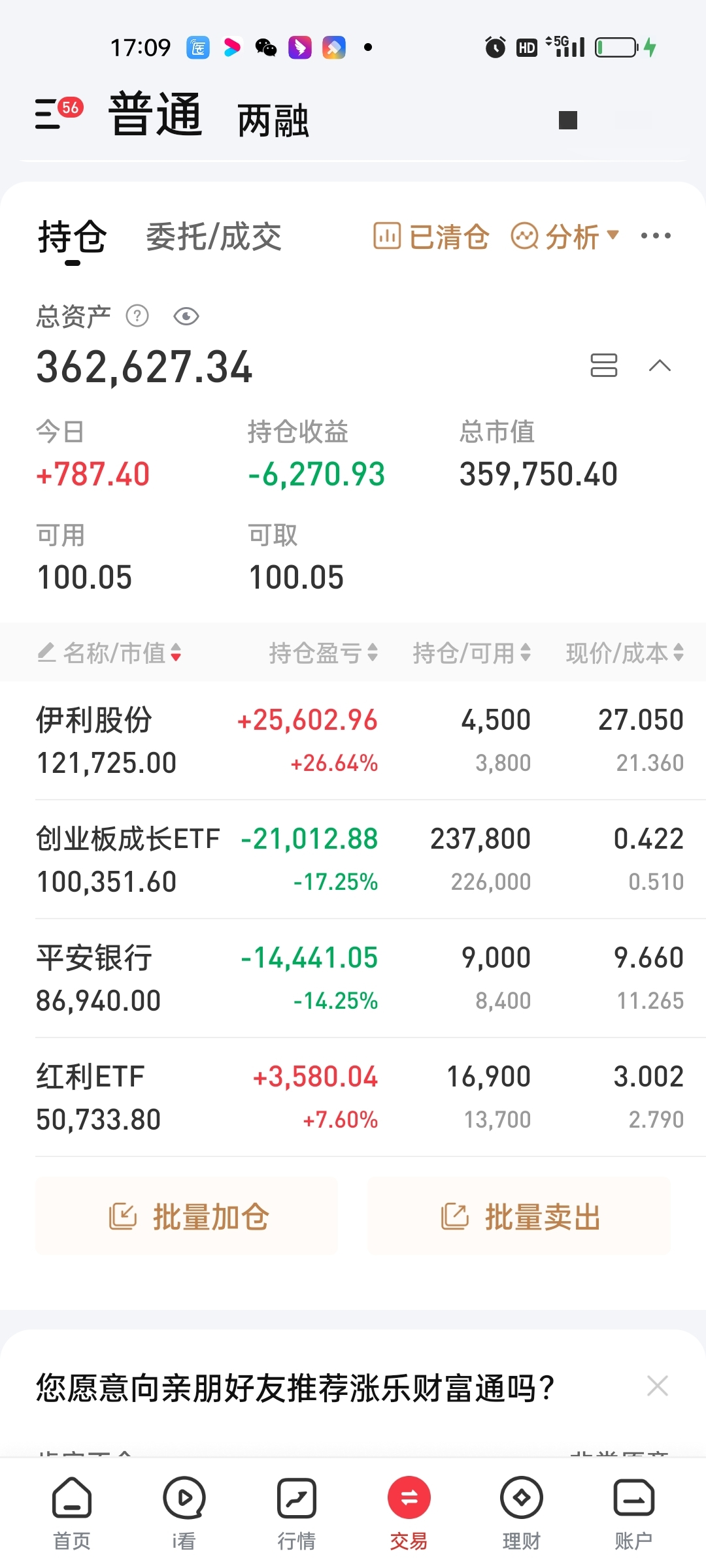 平安银行和伊利股份依然在底部慢悠悠墨迹。新加了部分港股科技etf,账户攻守平衡一下。