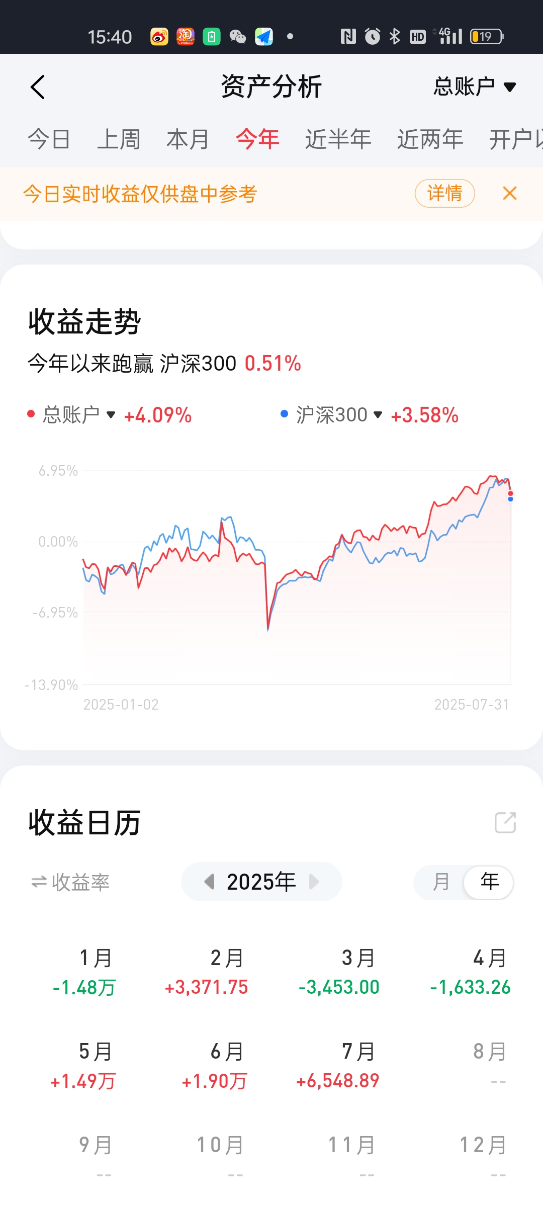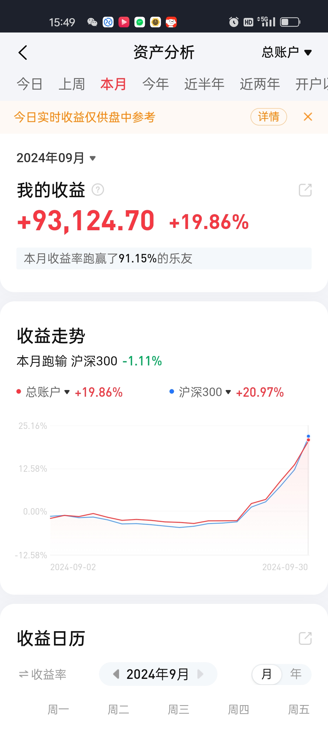 2025年9月收官。本月账户收益-2.02%,年度收益5.95%。大盘月收益0.64%,年收益15.84%。今年是个科技牛年,