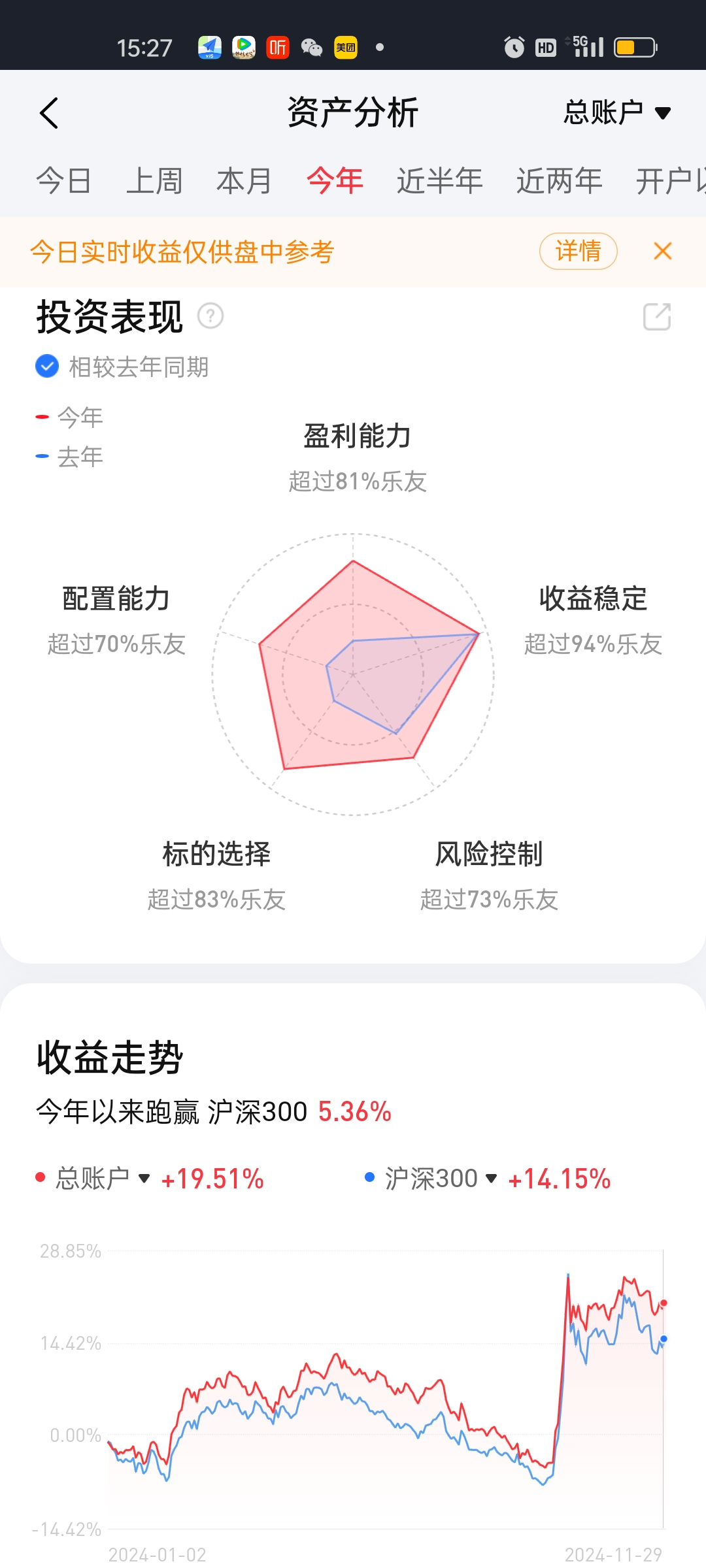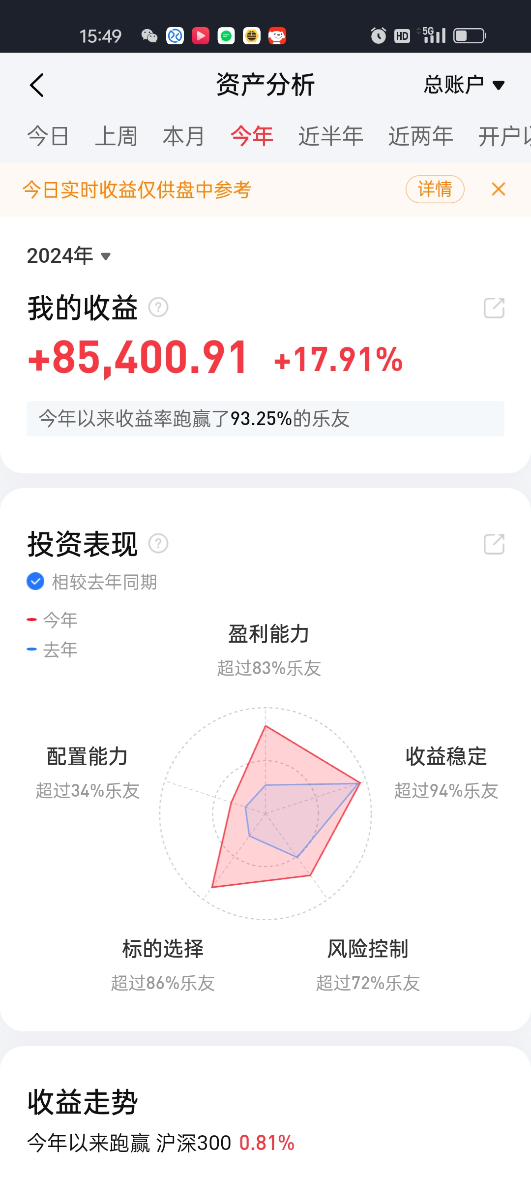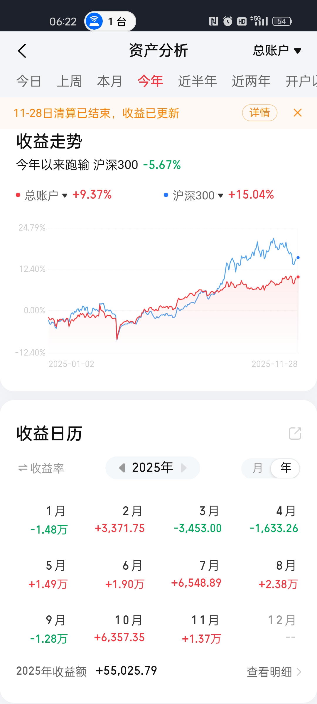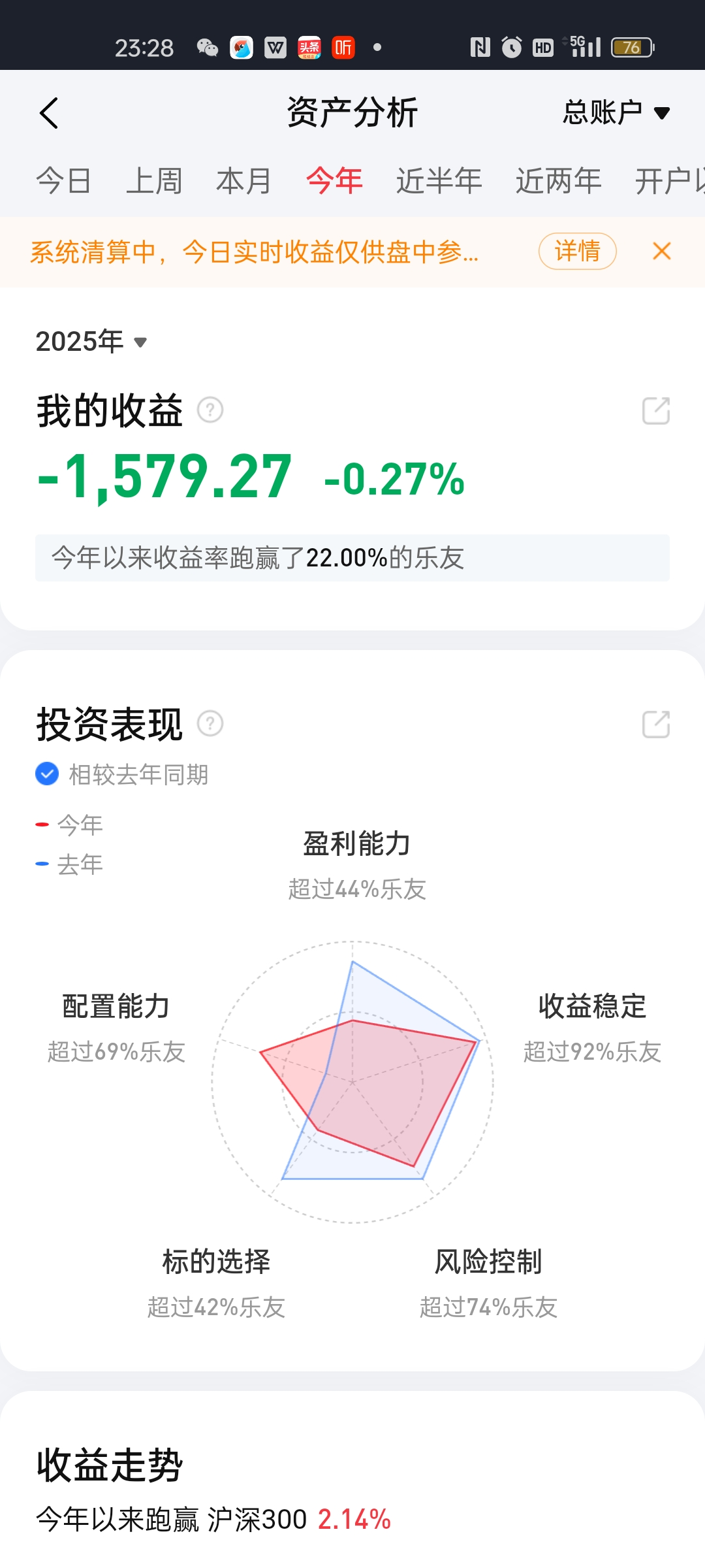 2025年10月收官。本月大盘涨幅1.85%,账户涨幅1.02%。年度收益大盘17.99%,账户7.04%。乐友幸会,为啥我的年收益10.59%只跑赢了77.46%的乐友呢?华泰这算法摸不着头脑的感觉。