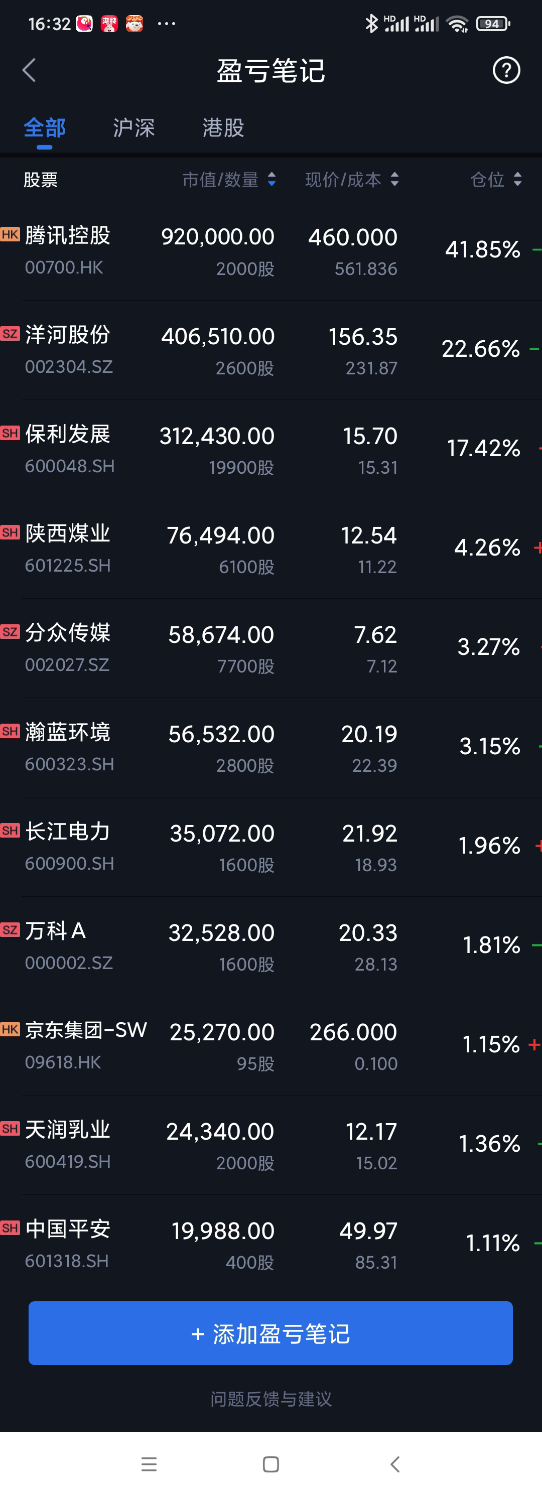 我的持仓中,腾讯京东分众瀚蓝陕煤,5个上涨,另外4个还是下跌。已经改变了前两天全盘皆墨的状况。