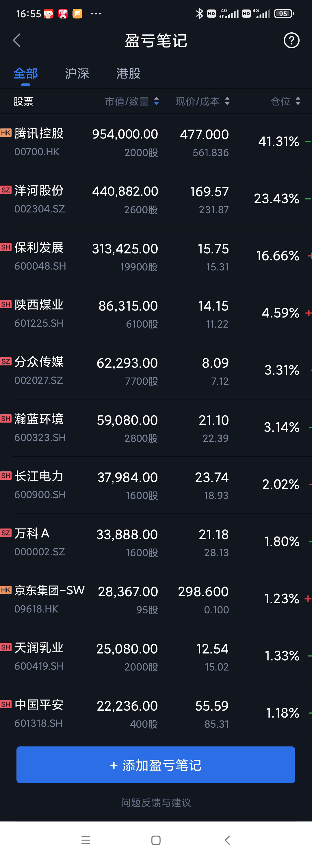 腾讯55%仓位,比老唐的腾讯仓位都要高不少。