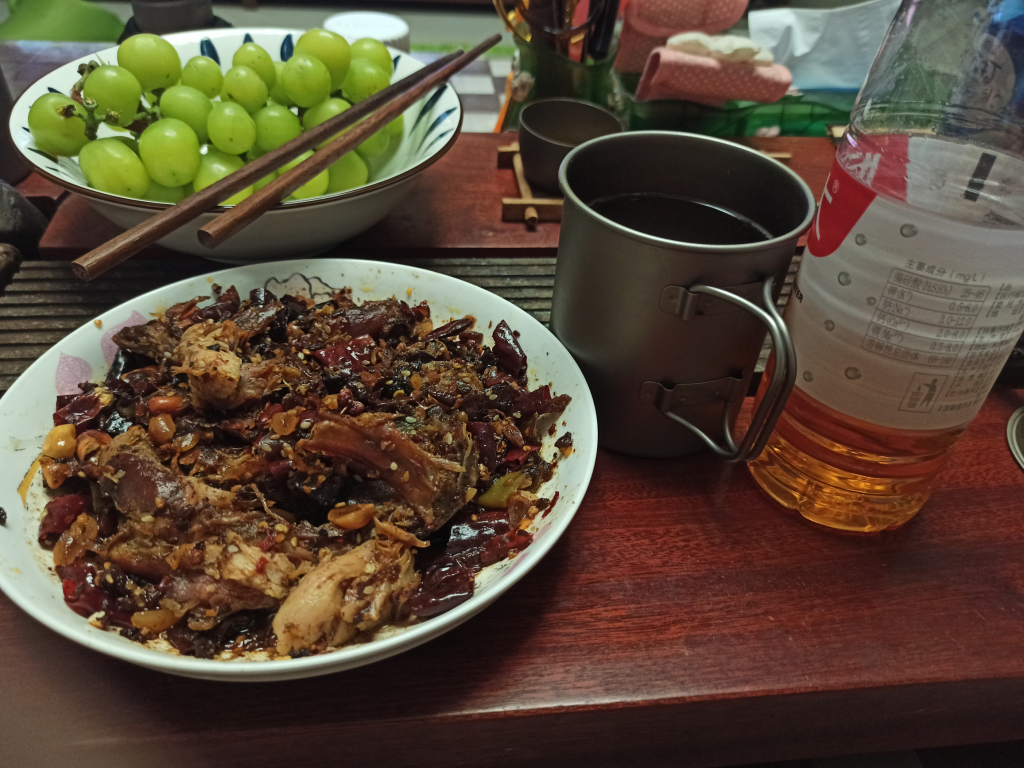 周五了,上持仓图。腾讯又跌破了百万港币。好诱人,想小钱钱。吃个四川发小寄过来的手撕兔,配上自己疫情期间泡了三年的青梅酒,加上美团买的阳光玫瑰,压压惊。