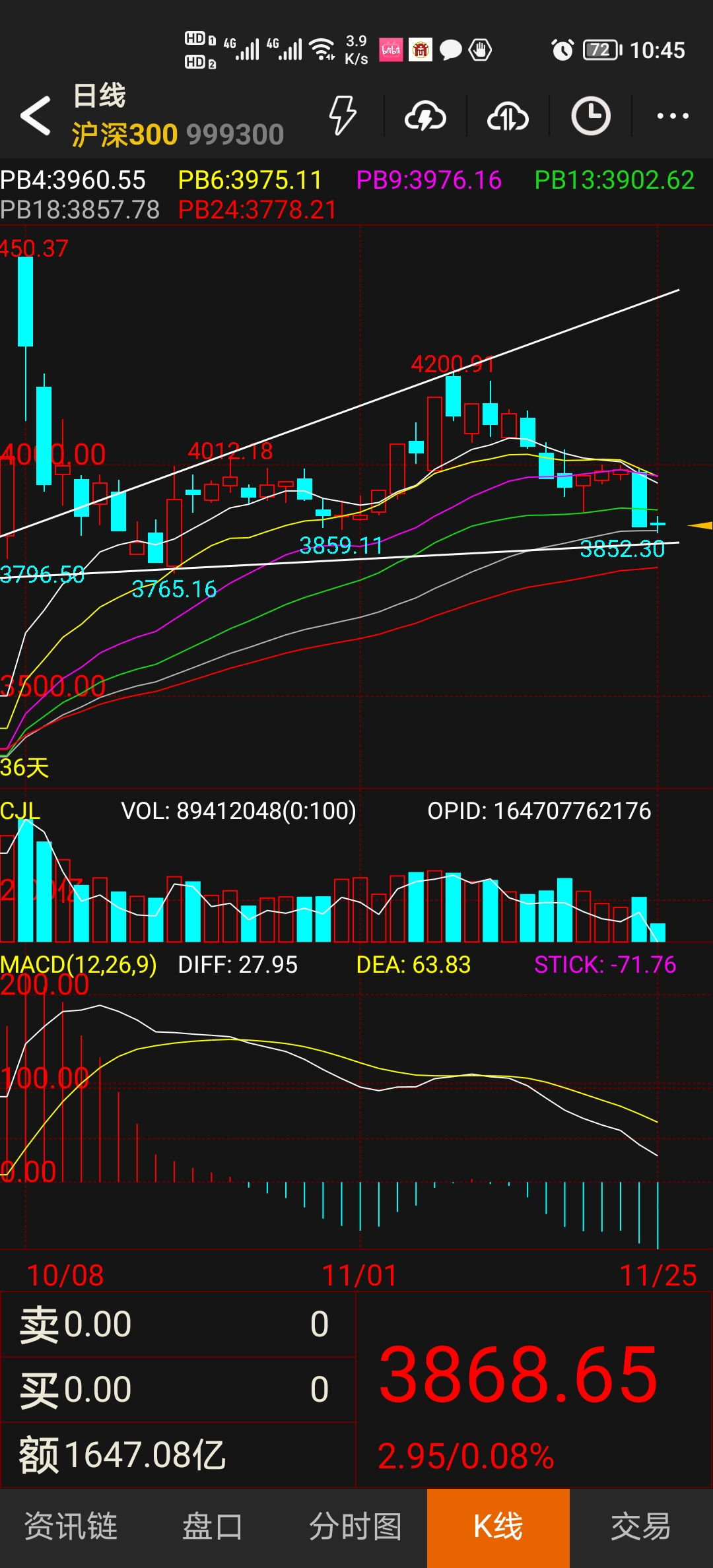 1k小反弹,若能靠近20日线,积极卸去自动加回的杠杆。分时图上,自9月下旬以来,形成了低点高点同时下降的味道,这个时候,进入谨慎状态是有必要的,起码不能太激进了。目前持仓,仍旧拥有很高的多g头寸,欢迎暴力反复。