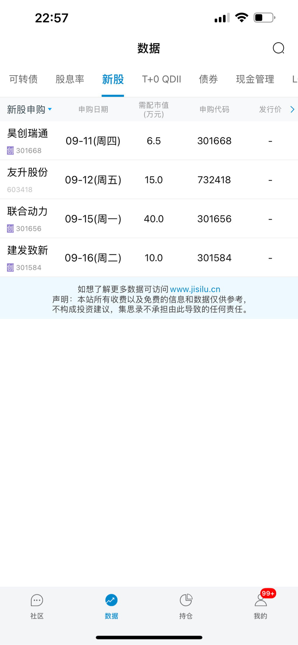 打新股的好日子真的是一去不复返了。前几年,一年中几十只新股,就像天天过年一样。从去年开始,打新就大不如从前了。我去年全年也只中3只新股,今年到昨天都半年了一只没中。好在昨晚查到中了2只屹唐股份哪里策略调整了么?现在可转债都中不了。