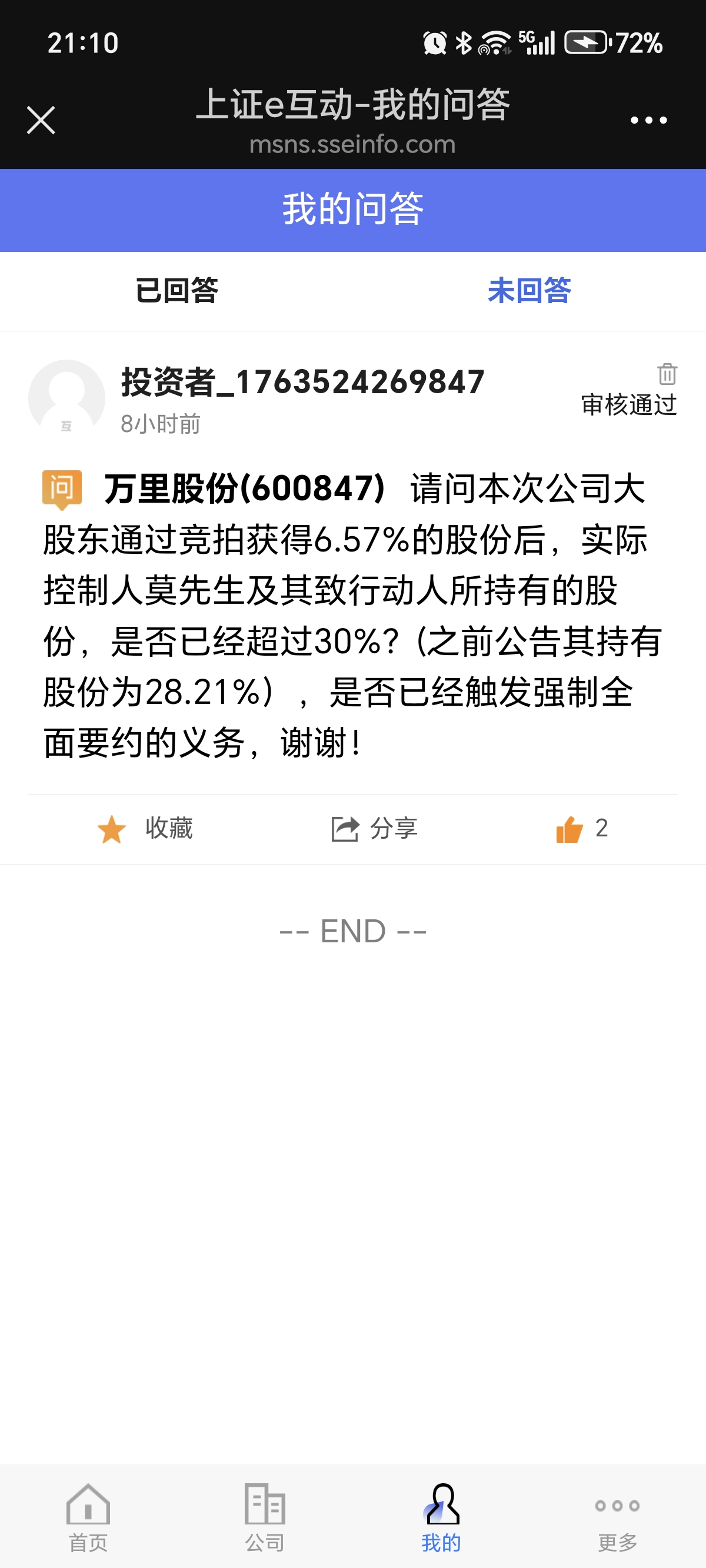 我在上证e互动上提问了,不知道公司会不会及时回复。法拍前莫天全已经有这6.57%的投票权了,法拍后不仅有投票权,且变成直接持股,投票权前后都是34.78%不变,所以不触发要约。
