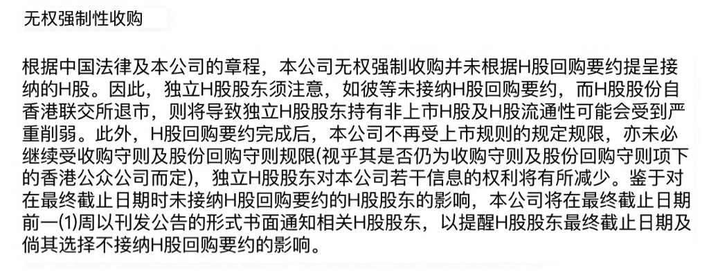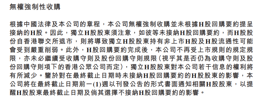 从公告看,应该是2次,第一、5.2日晚7点公布一次有效要约接纳90%的数量,如果达到了就是成功变成无条件要约,也就是强制要约,到5.24日结束交易退市,如果没有达到90%的数量,就延期,到5.30日截止接纳,港股回购真是复杂,问一下1、5.2日晚公布有效要约接纳超过90%的数量,已达成无条件要约,也就是强制要约,那剩下的未申报的是在5.24日结束交易退市强制收走剩余股份还是需要持有者申报一次?2、假设5.2日晚公布的要约接纳未达到90%,继续延期到5.30日申报结束后仍未达到90%,是不是回购失败?前期申报的股份是退股份还是付回购款?第一次参与H股回购,希望懂的老师能解答一下。