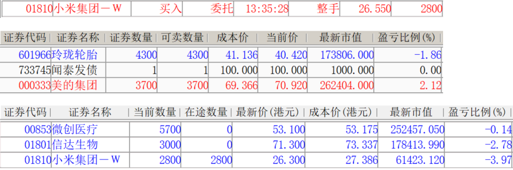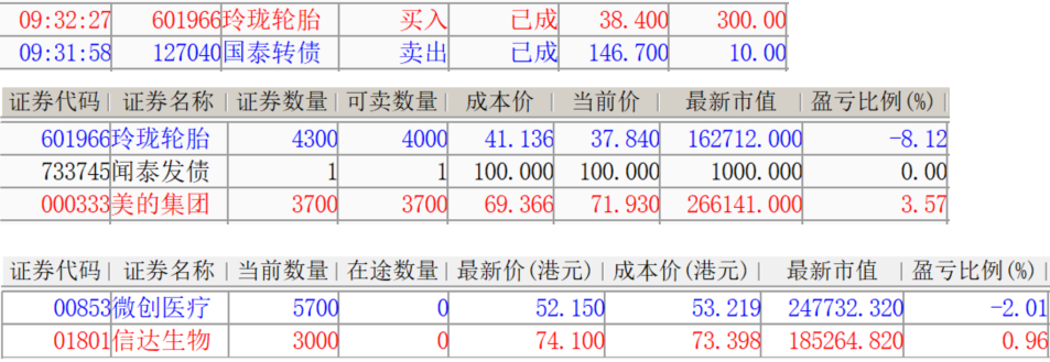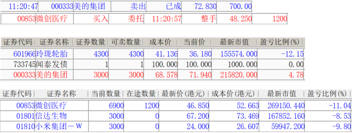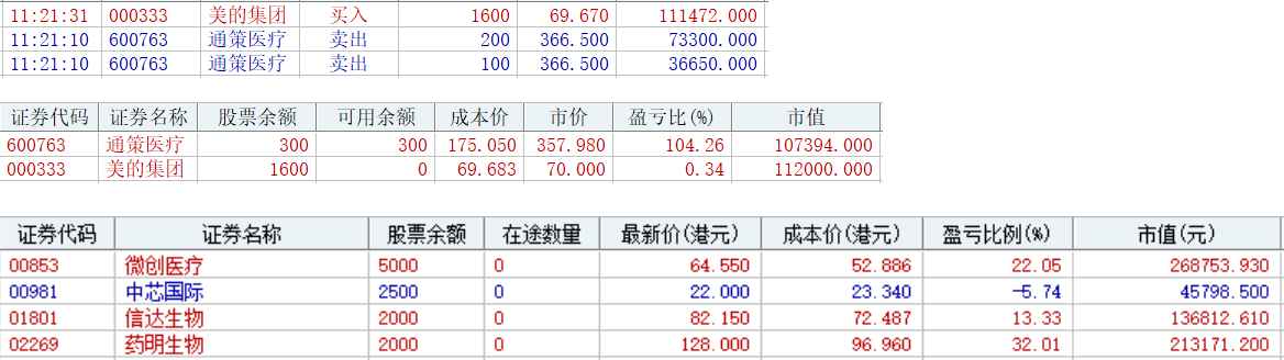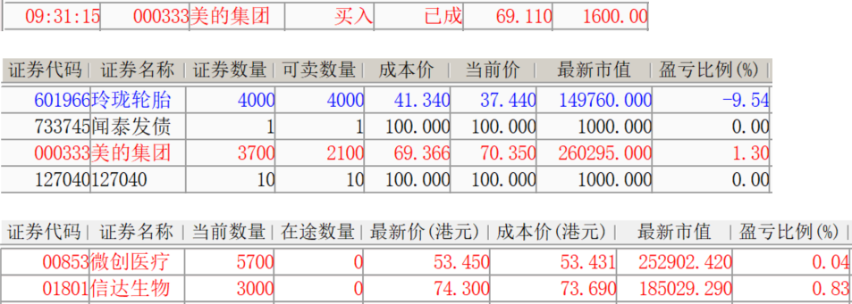 临时新增三万五千买入美的集团,等港股通周五再退回来。