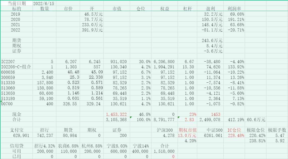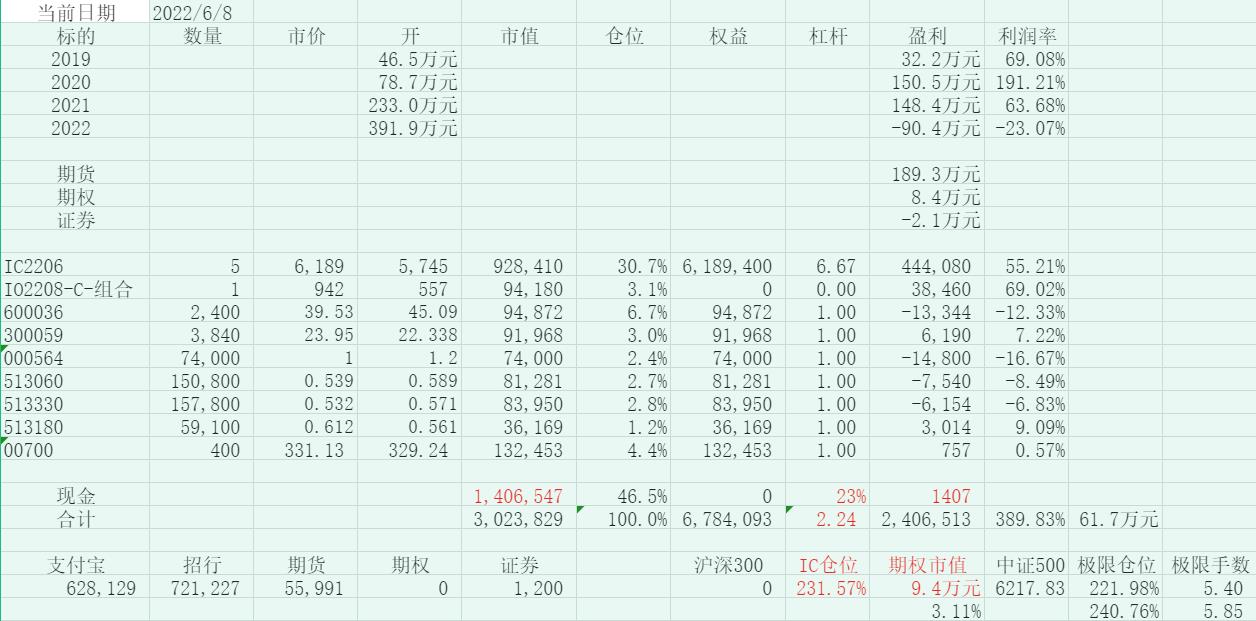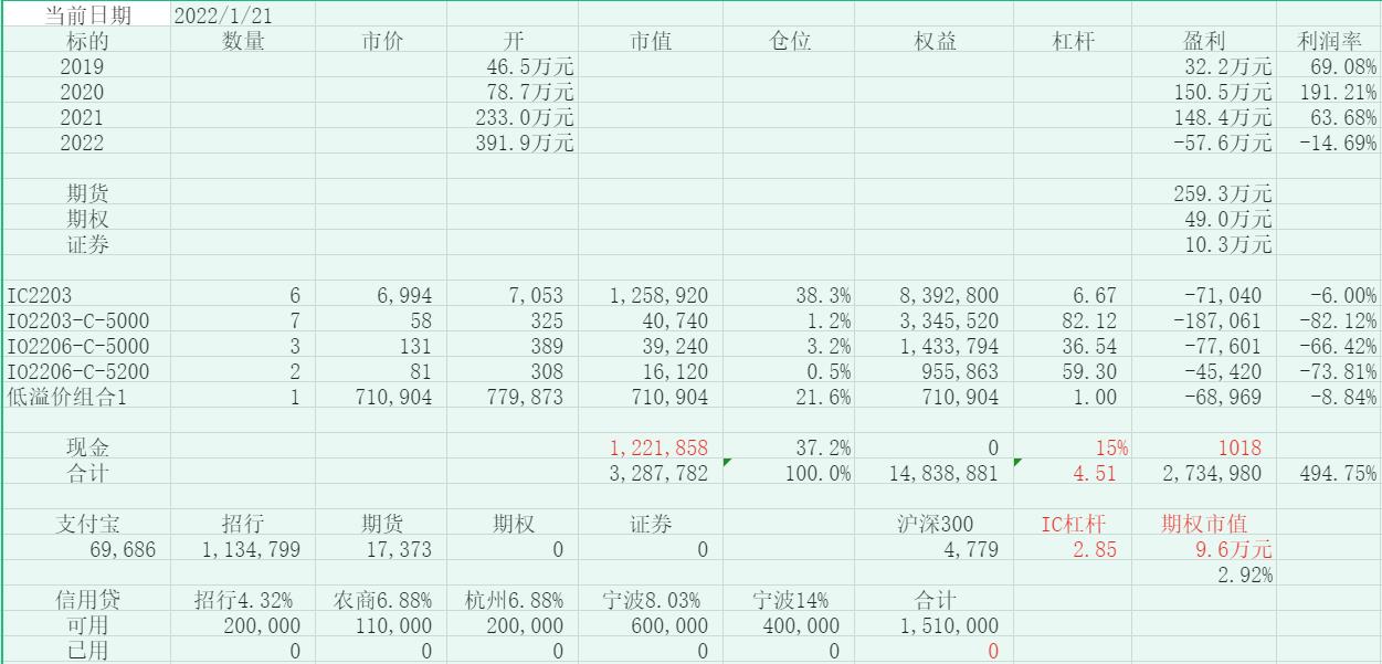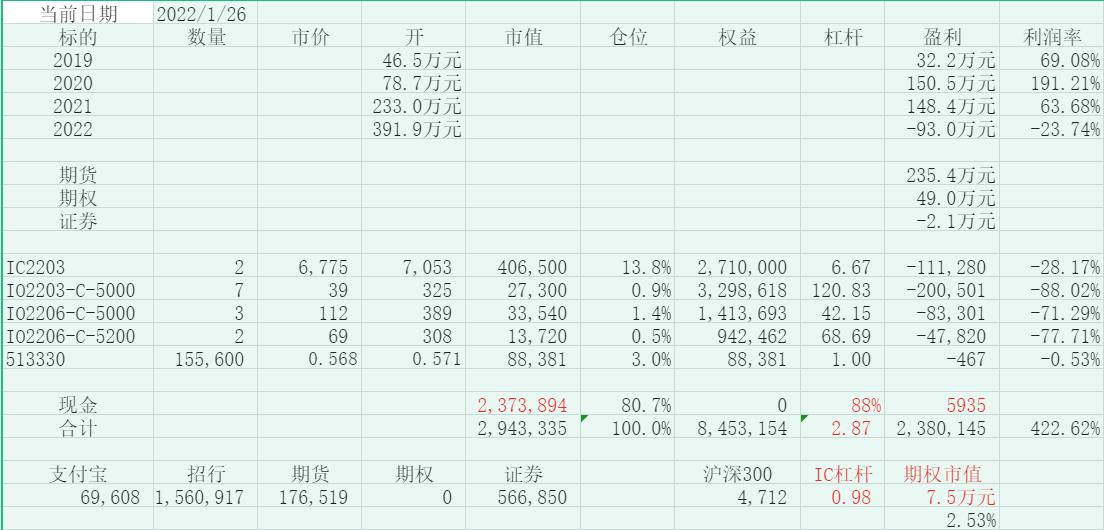 今天,把IC杠杆卸了,低溢价可转债组合清了。2022开门就录得93万,24%的亏损。