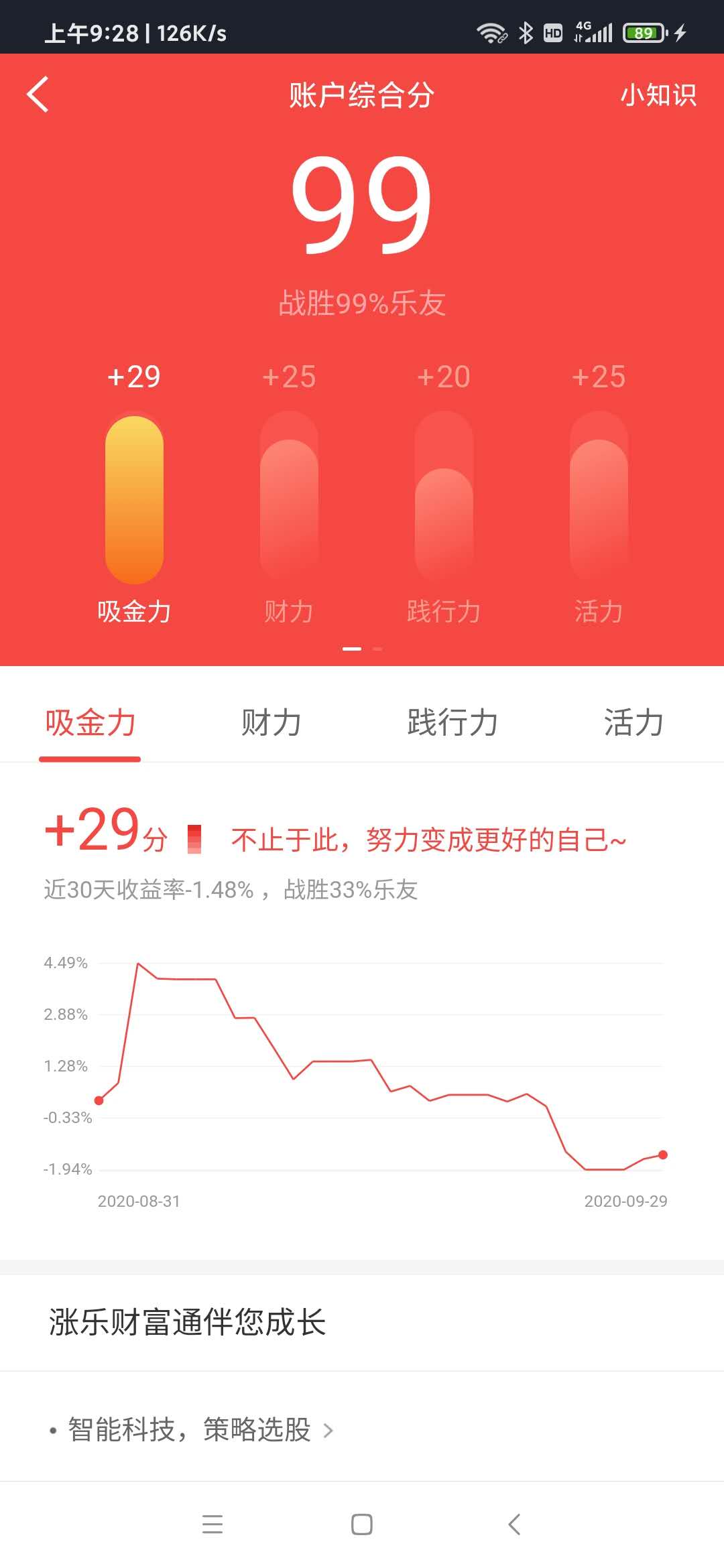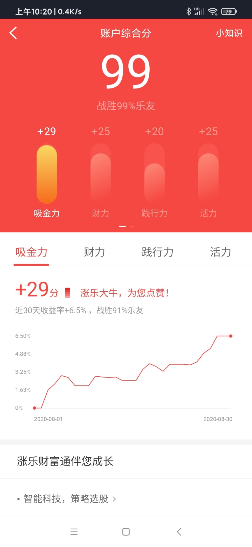 截止上周五,本月的华泰主账户收益图如下,运气不错终于又战胜90%的乐友了: