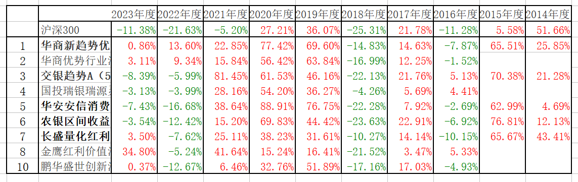 上年末选的10只基金,还行,华商新趋势(166301)连续3年跑出好成绩!