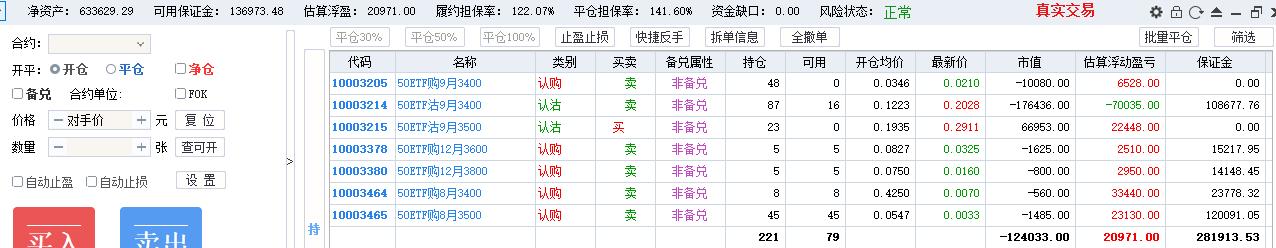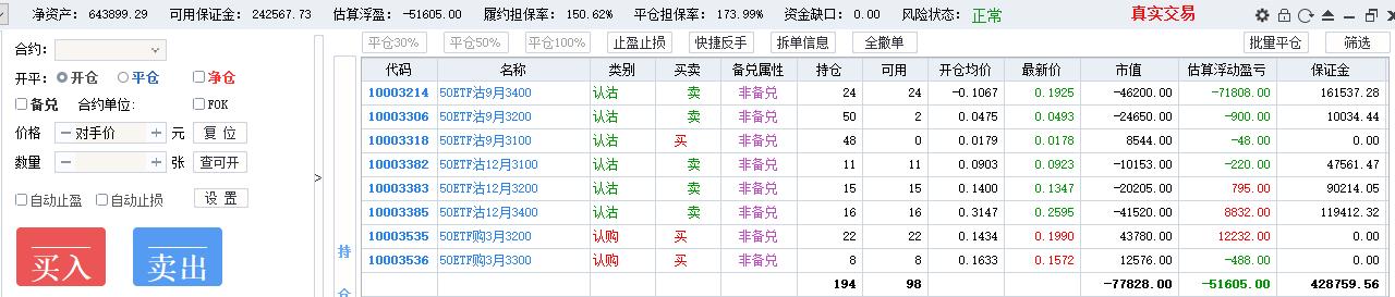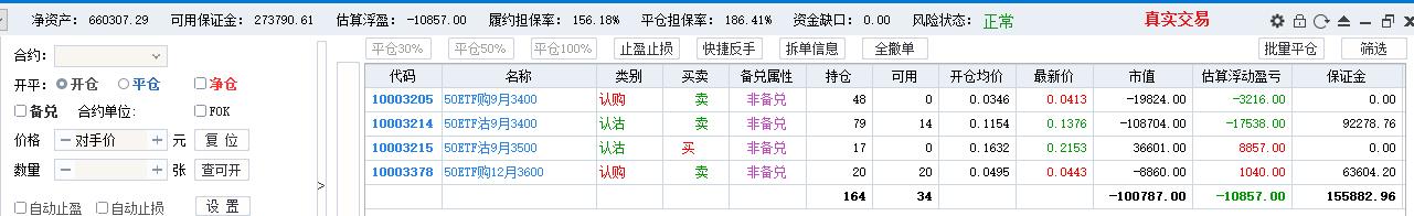 如果是为了降低风险度,逻辑上应该平仓8月3400卖购,按照市值开9月3400卖购的张数,张数做个缩减,不应该等数量移仓。还有就是一次性移仓数量过大,还是应该分批移仓。