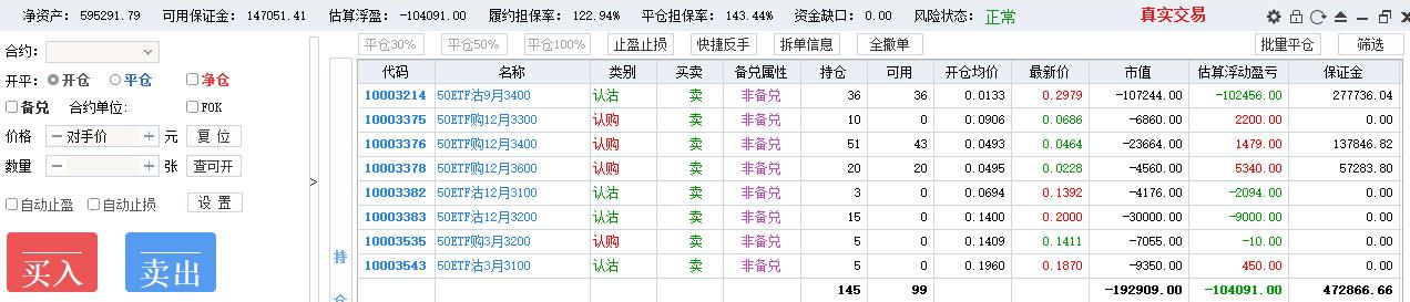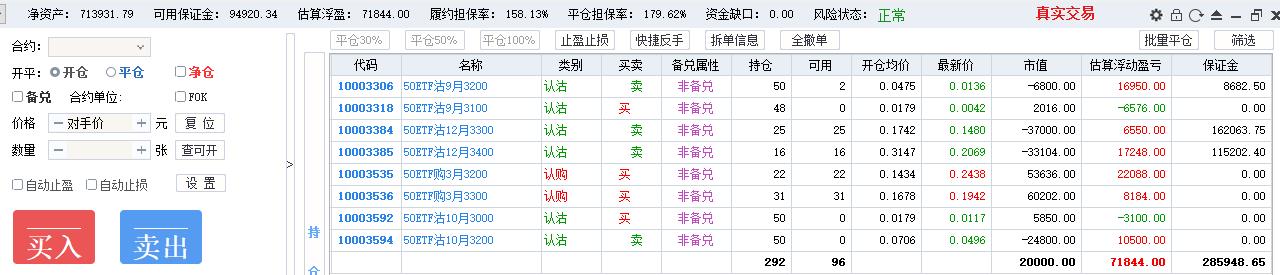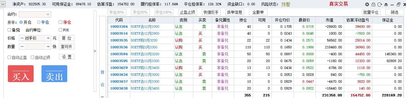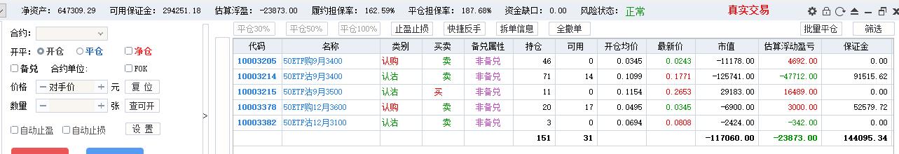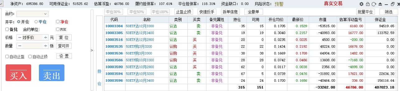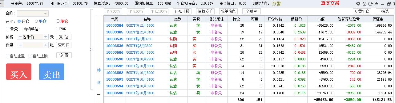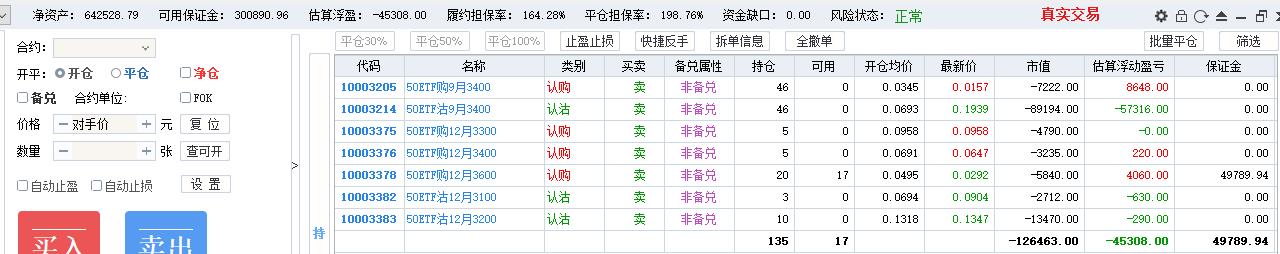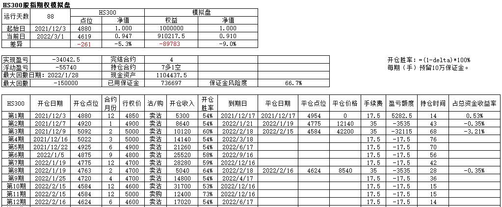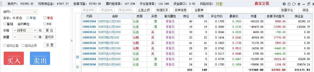 每日买入 10张12月2900沽,卖出5张12月3300沽,现金流买入3月3300购