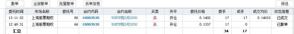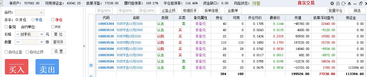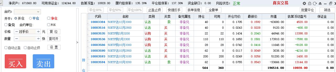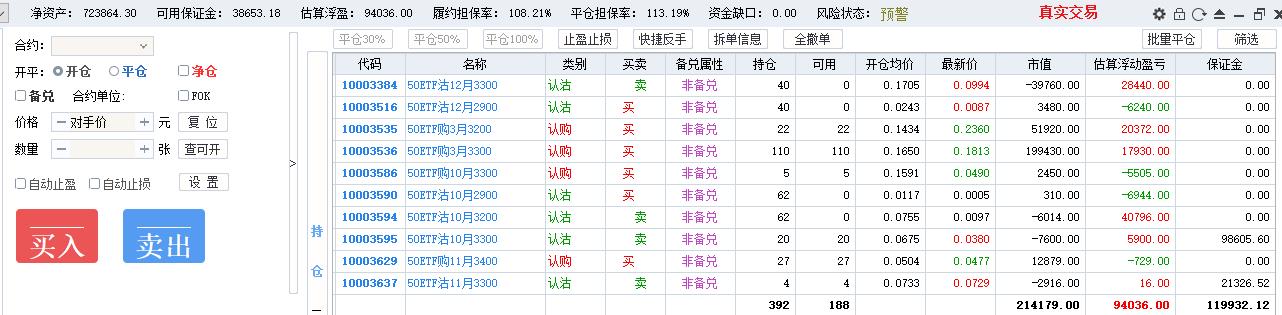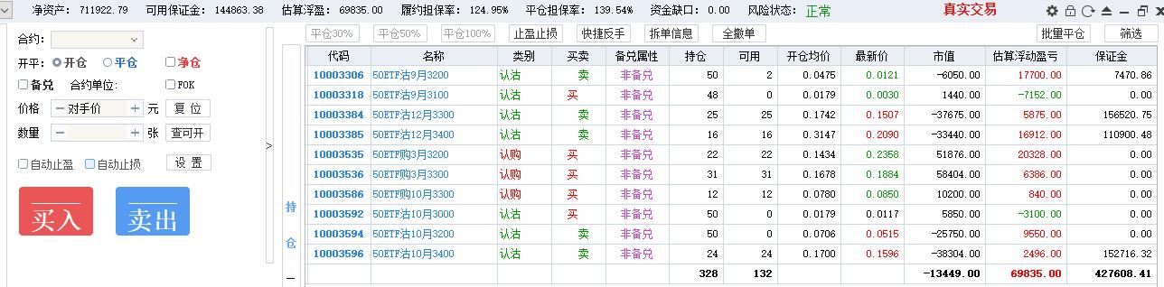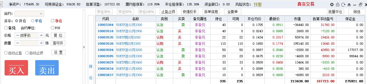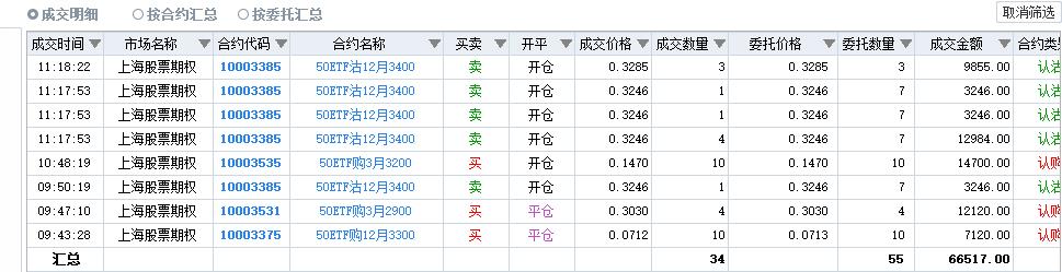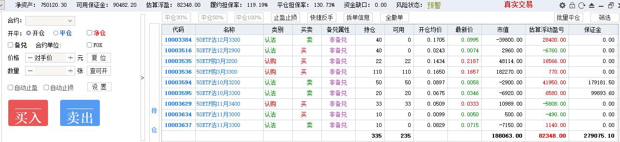 10.13:标的3.280附近 平仓6手10月3300买购,卖出1手11月3300沽。买入7手11月3400购。